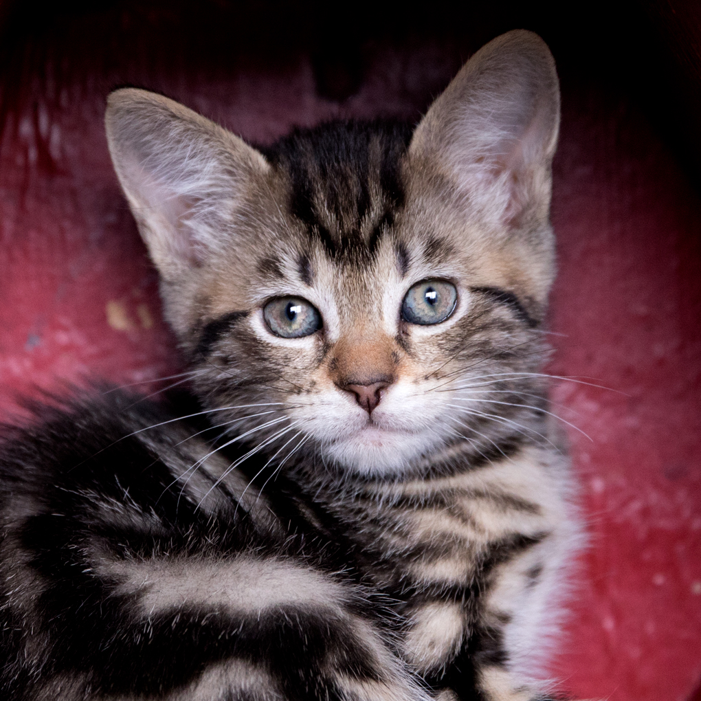 She loves to play and growing up with five kitten siblings has kept things fun. She loves feather toys or anything with catnip. A good old cardboard box is always a favourite too.
