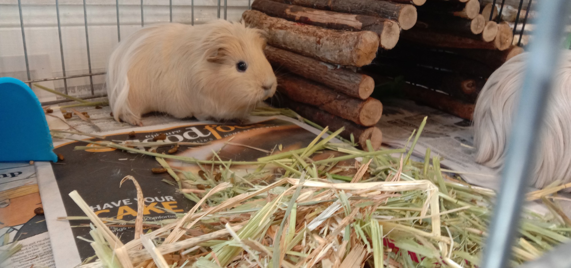 Our rabbits and guinea pigs are fed Showmaster rabbit and guinea pig food, and quality oaten hay, it is best top continue with this food. Always ensure there is plenty of water, fruit and veg available