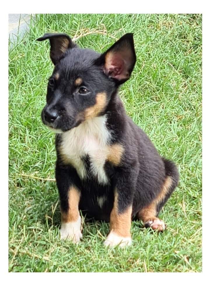 I’m a sweet and shy girl and I was the runt of the litter, but don’t let that fool you. I’m miss independent, I’m frightened of nothing, I know what I want when I want! My foster mum says I’m already exhibiting signs of being an extremely intelligent pup, I’m a real thinker. I would love daily enrichment and would excel at training giving my working dog mix. I love a variety of toys that keep my mind active. Coming from a litter of 6, I would dearly love to have another dog around for company or a mum/dad that works from home to keep me company. I love to run and do zoomies, so if you are sporty and energetic, I’d love to come home with you so we can burn of energy together! I love being outside and exploring, so you need to have a good size yard for me. I’m currently in foster care with cats, and a skin child and another grown dog. I love them all, especially my older foster brother/dog.