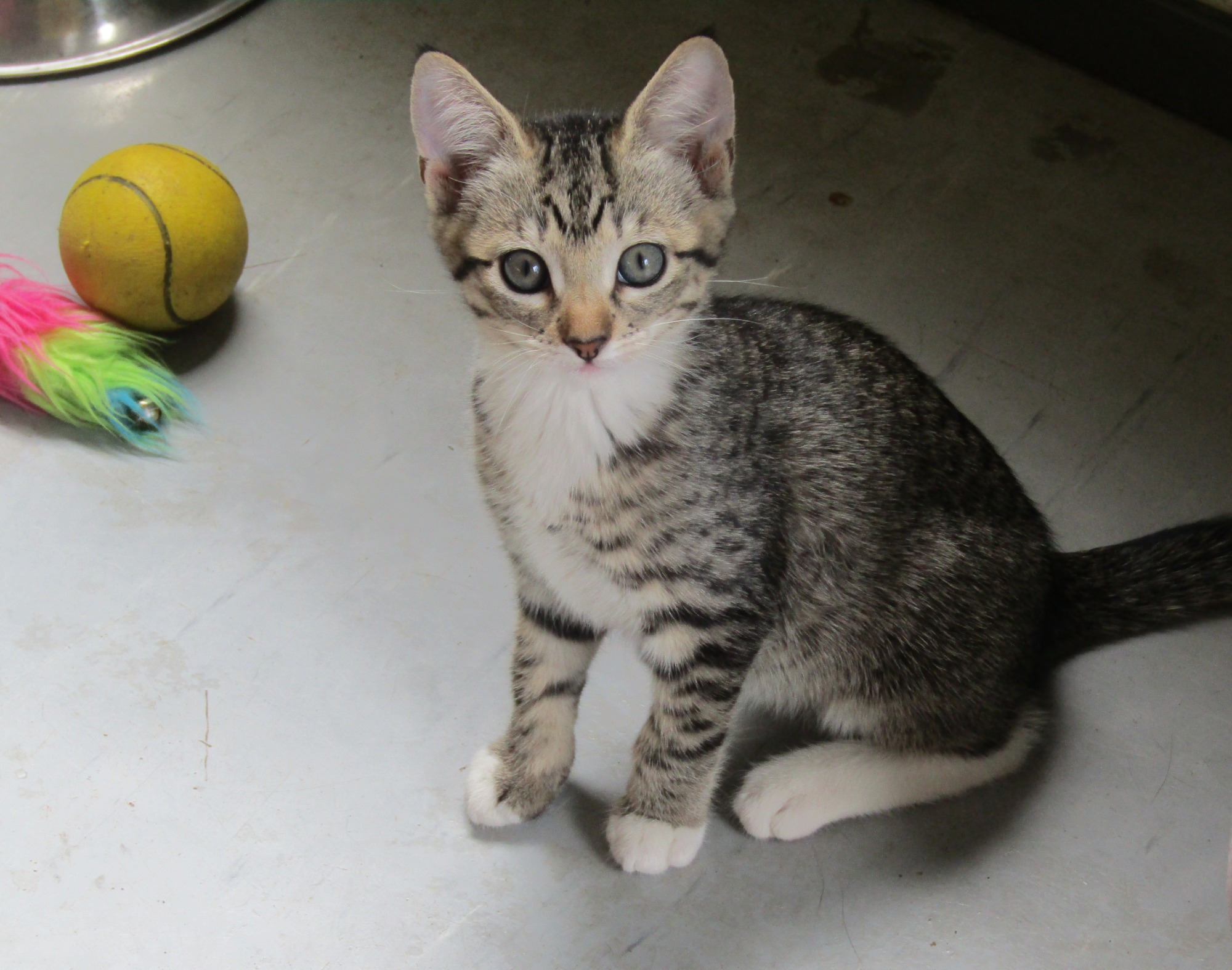 Lottie arrived as a small baby in a litter of 6 with their mother Loulou at the end of September and went straight into foster care. Loulou was a wonderful mother making sure her babies were well fed although she was in a bad state. Lottie, like her mother is a lovely young lady and gets on well with all the other kittens. She is very affectionate, playful mischievous kitten. She loves being stroked and will happily come jump up on your lap only to run climb and play. She is now desexed, microchipped and immunised as are her siblings ready for their new homes.