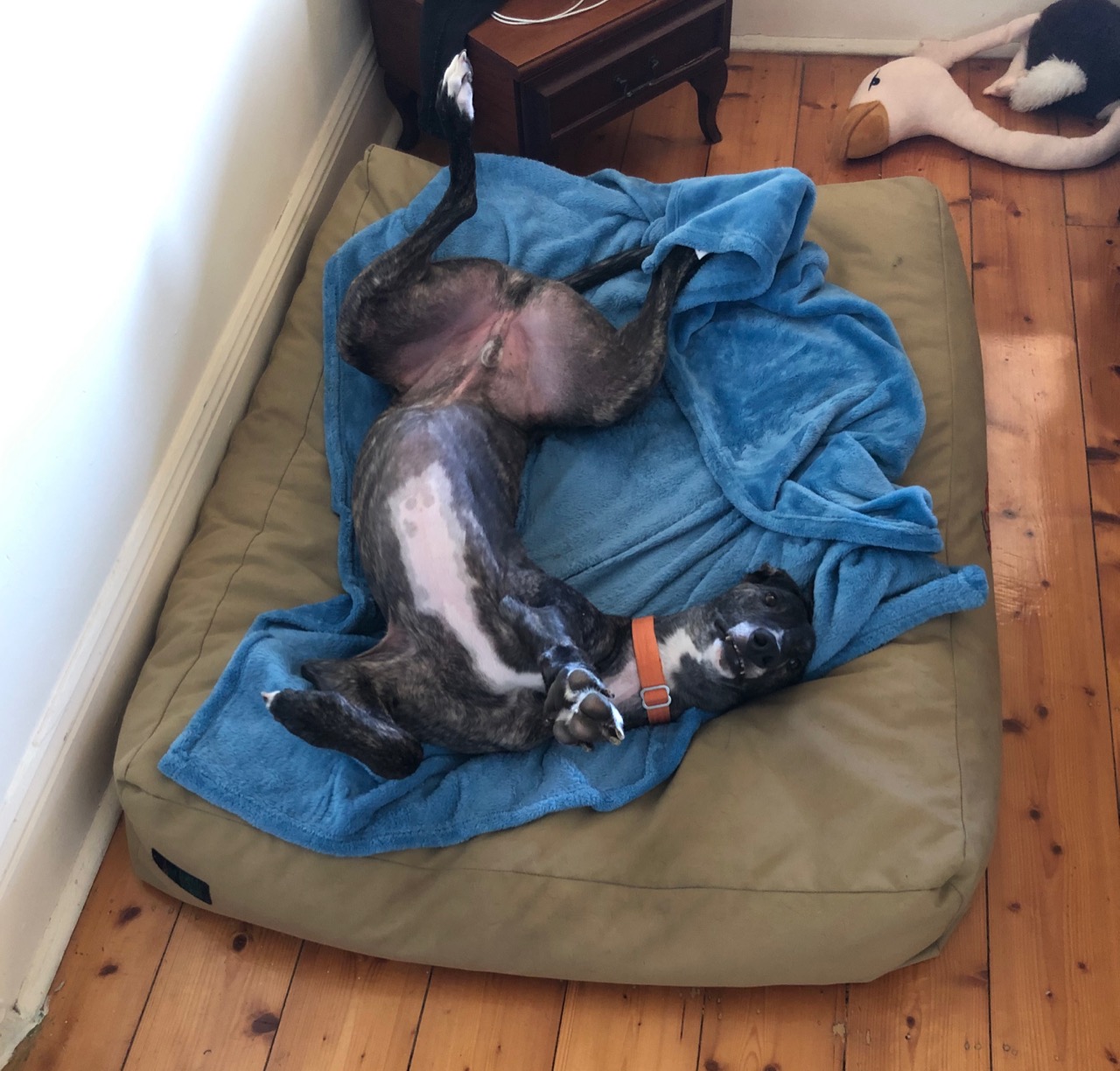 Thor, being the Norse God of cuddles does love his walkies and zoomies but also happy to rest in between the lightning flashes. Thor can be a bit sooky, resting his head in your lap for some loving in between naps.