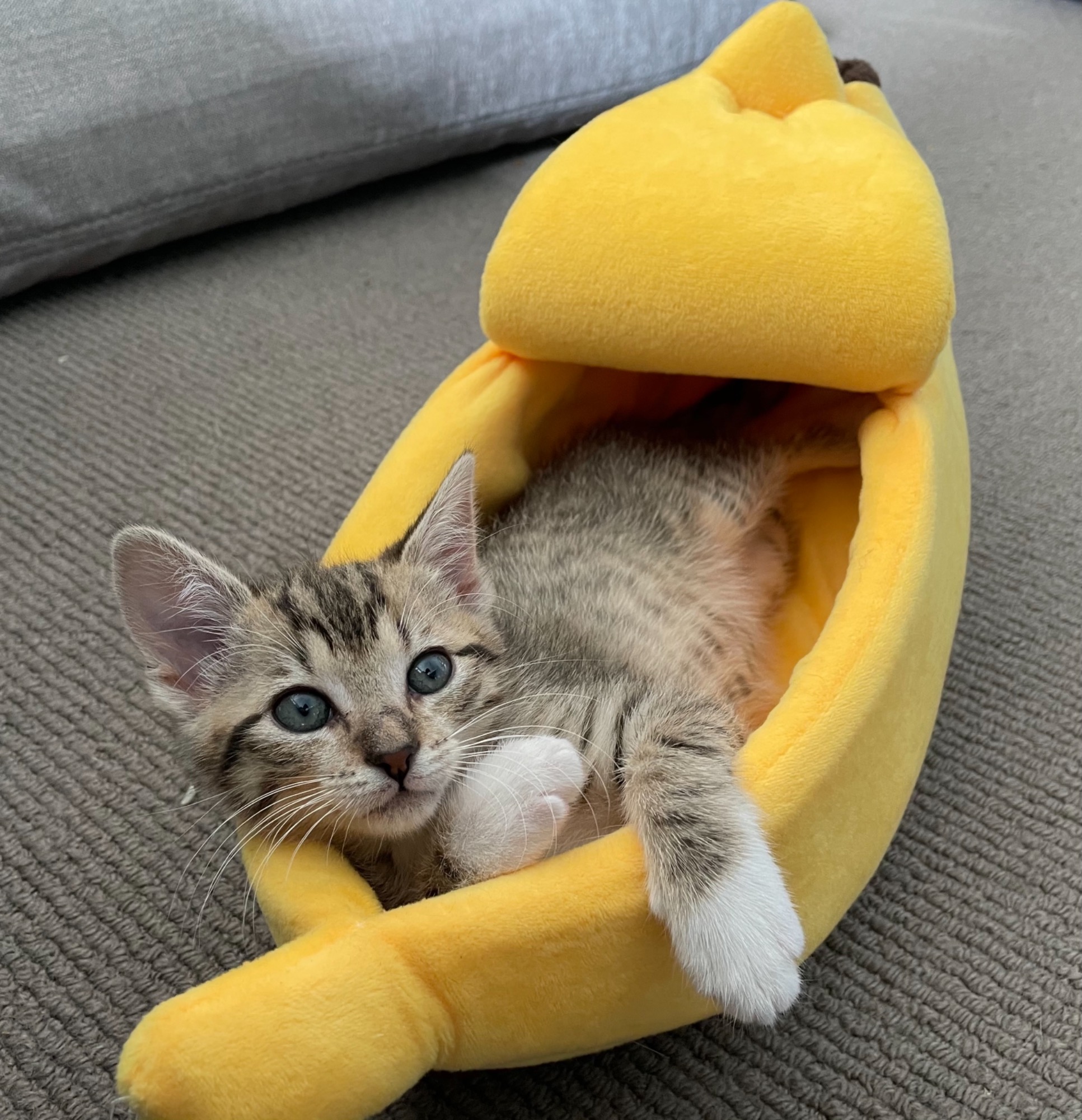 She's a sweet little snuggle bug when she's not being busy, Dora will come for a cuddle and spend the whole night tucked under the blanket or up on the pillow. She likes to be close and is obsessed with making little biscuits on soft blankets!
