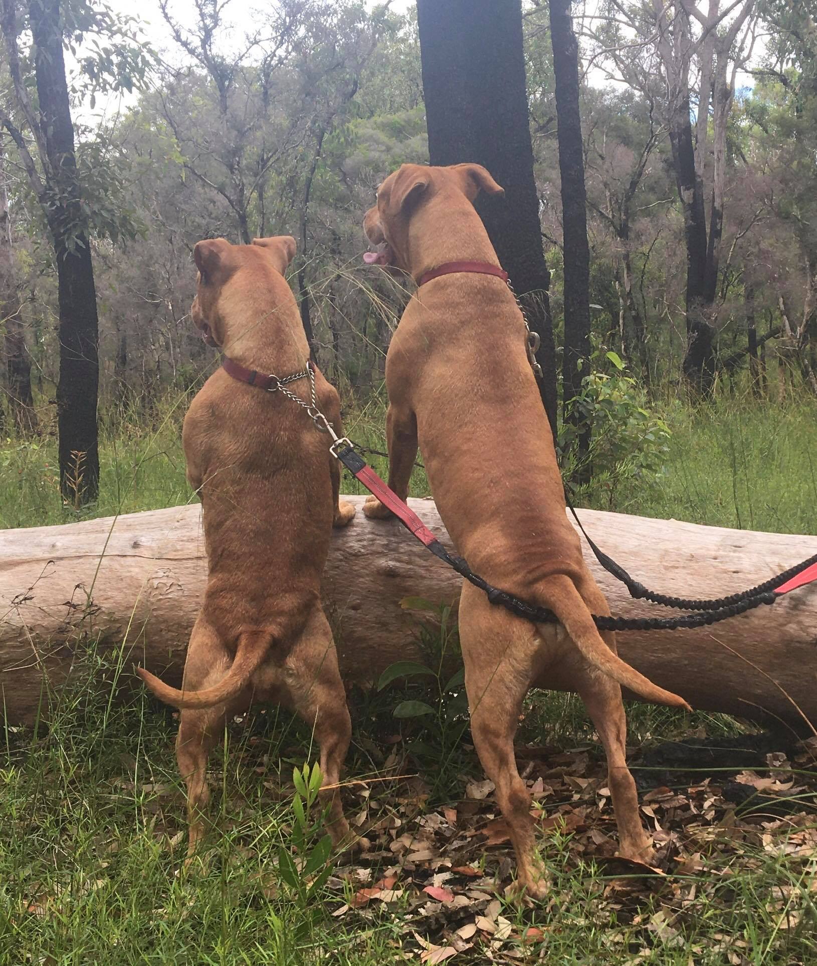 This dynamic duo are great mates and a bonded pair. They love running together, splashing through puddles, playing bitey face and just hanging out. Both will sit for treats and will definitely help you out with a tow when going for an uphill run.