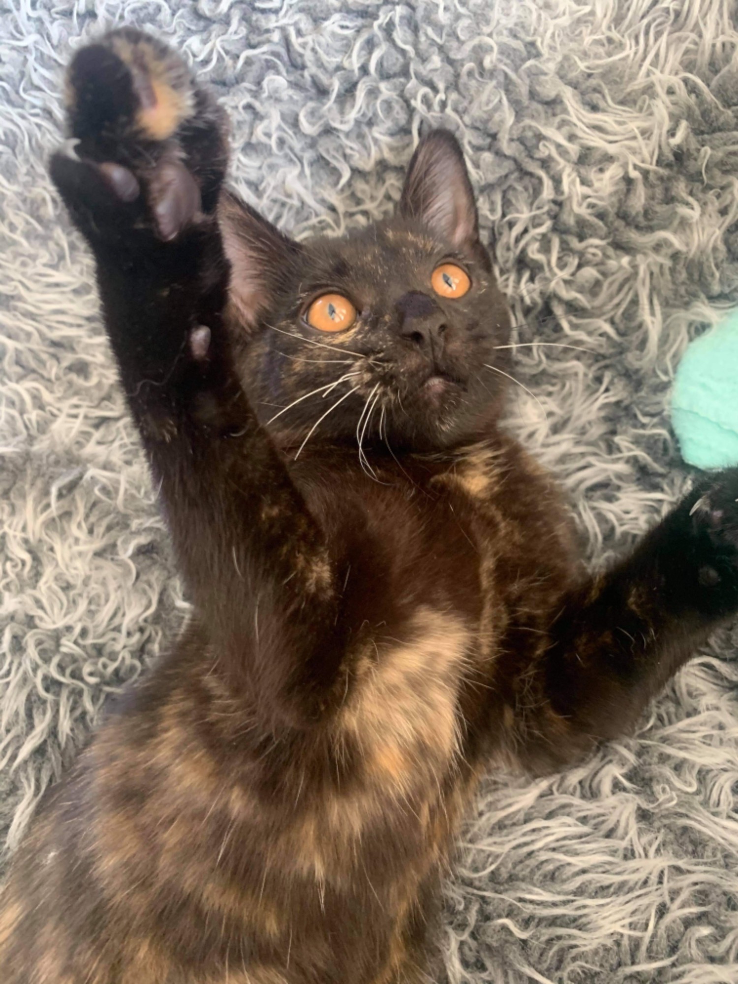 She has been in foster with lots of other cats and dogs and loves them all, so her forever home would ideally have a friend for her to play with.