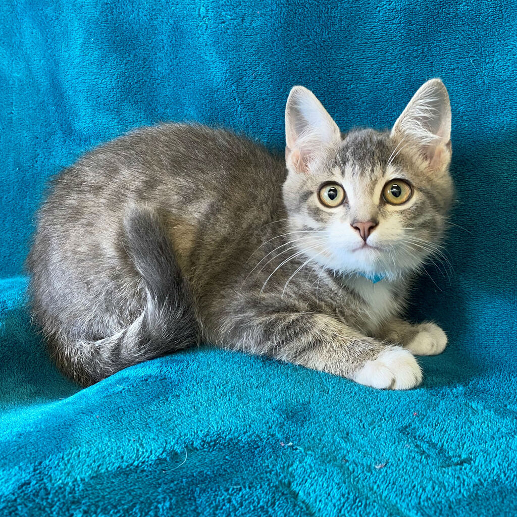 Like all kittens he enjoys his playtime and dinner time, whichever comes up first he's not worried. Charlie will need an owner who will understand his initial shyness and take the time to let him settle into his new forever home.