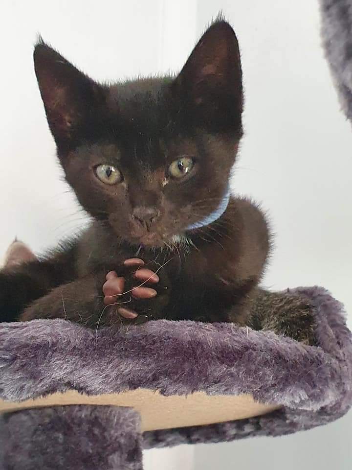 Missy is beautiful, she has a sweet little white patch on her neck and another on her tummy. She is a climber and likes to chase her fish on a stick. She is litter trained, cat friendly and unsure of dogs.