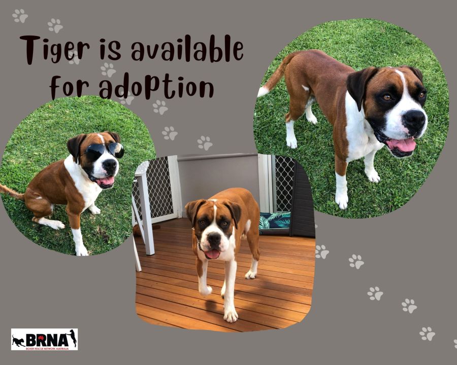 Tiger is a beautiful boy with lots of love to give. Like most boxers when his humans (or visitors) come home, he shows his love by getting very excited although soon settles down for a cuddle or snooze...... (which often includes snoring)!!