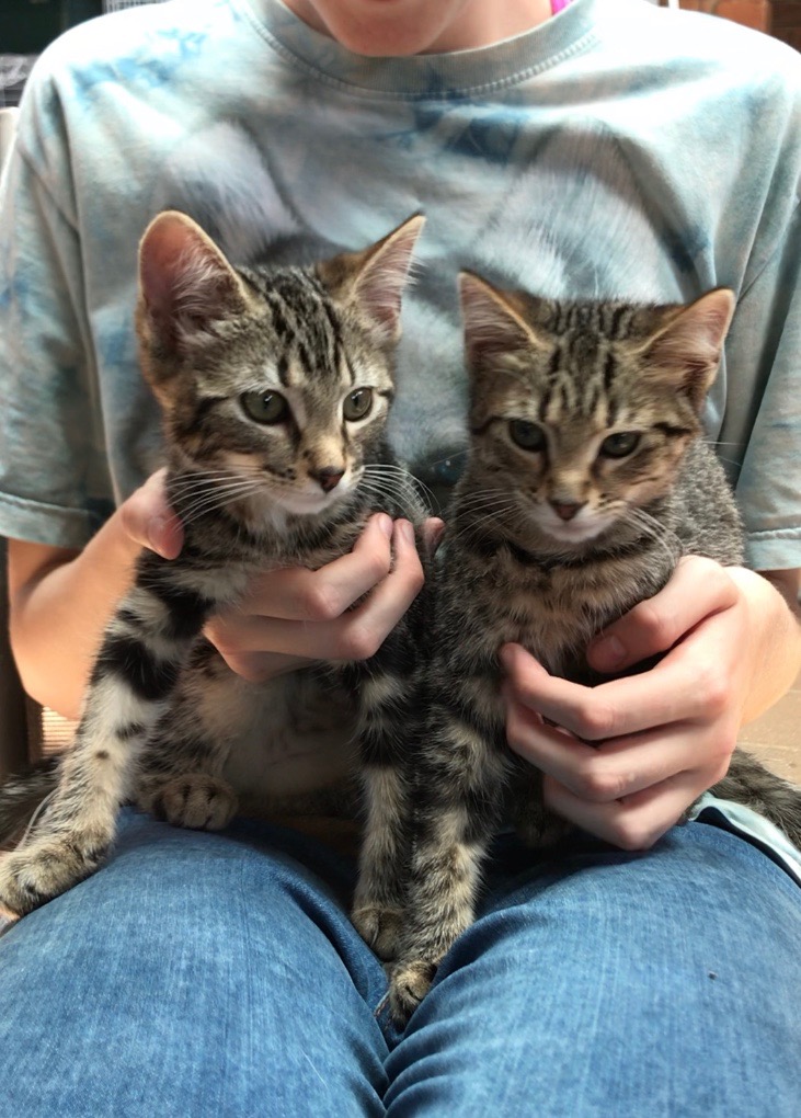 The girls have met dogs and were fine with them, and would be happy in a home with gentle kids who understand that kittens need their space.