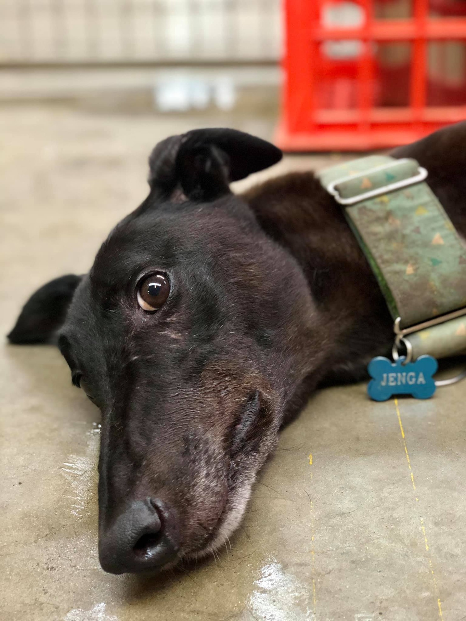 Jenga is fabulous on the lead. He doesn't need long walks, but loves having a grassy spot to lounge outside. He's happy with his own company and enjoys being able to go outside when he likes. Jenga can be left for short periods of time without a problem. He is okay with kids, but would be better suited to a home with children over 12.