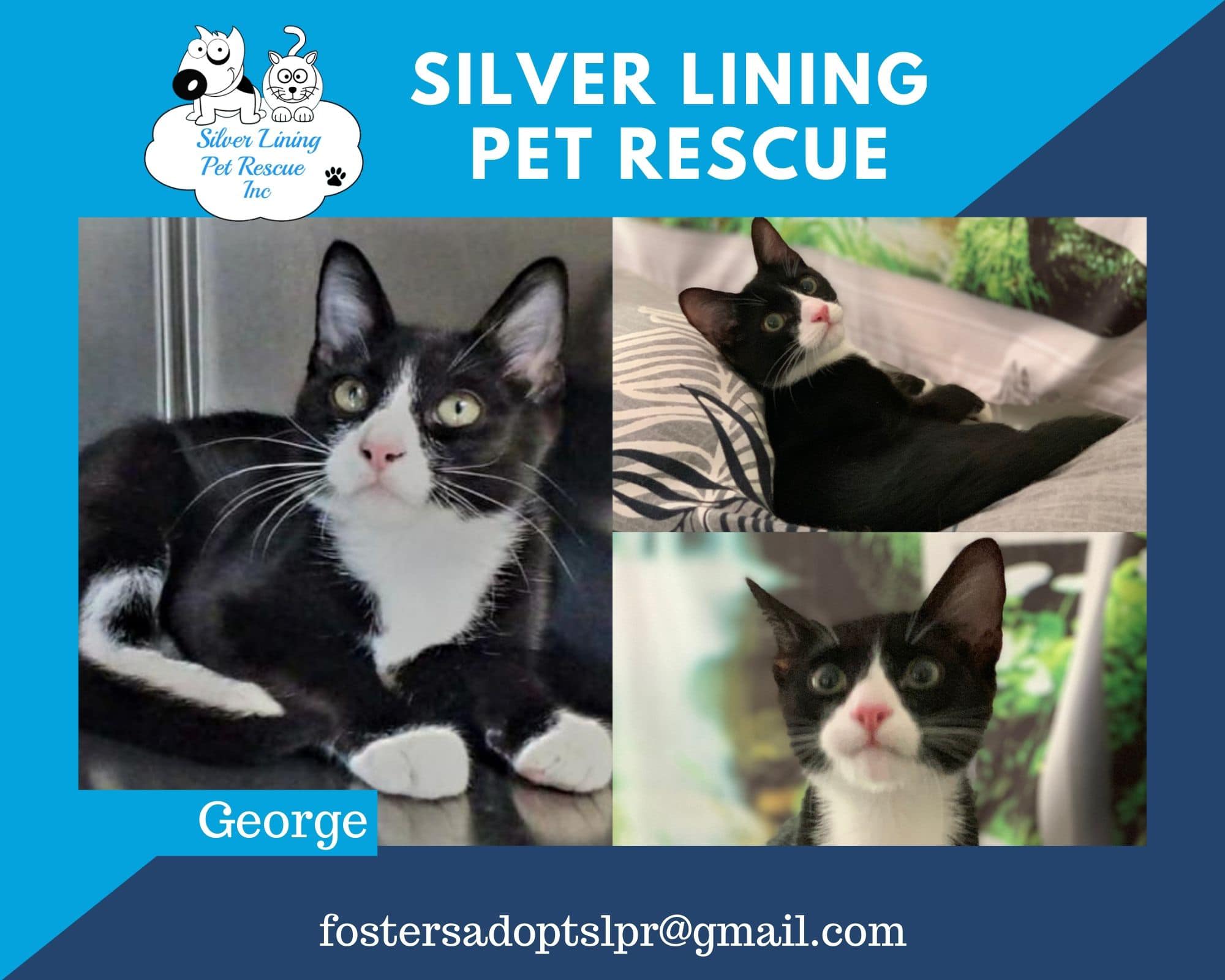 George happily sits on your lap while you watch tv or makes himself comfortable in the bathroom while you’re having a bubble bath.