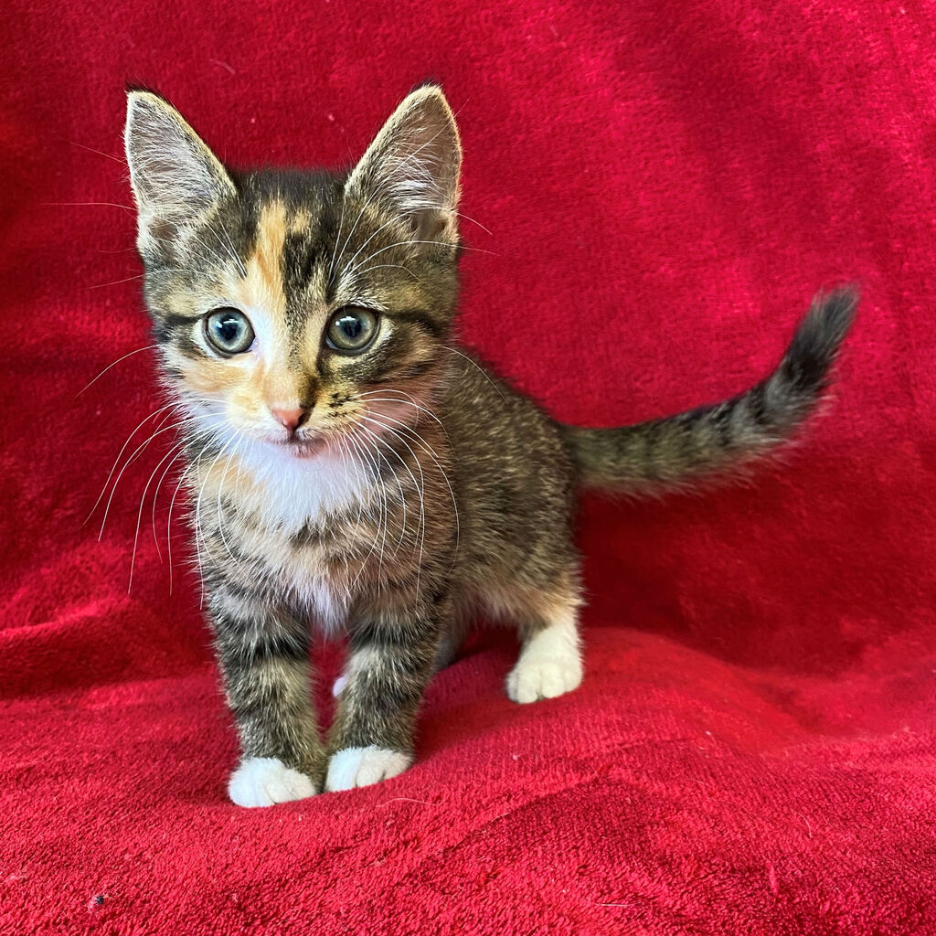 Super Sophie will keep your days filled with fun kitten antics. Sophie enjoys all the great kitten pleasures like playing sleeping and eating. With her lovely looks and sweet nature Sophie will steal your heart in seconds. Sophie will be a purrfect addition to any sized family.