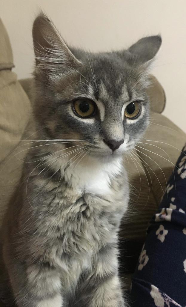 The beautiful Fleur is one serious smooch!!! A stunning grey and white tabby female with a lovely bushy tail. She loves people - so she has been with humans and most likely children at some stage before roaming the streets. Fleur is currently in care with foster cat Yoko, resident cats, 2 Rottweilers and older children. She doesn't mind being picked up and travels well in a carrier. If the beautiful Fleur is for you - please get in touch!
