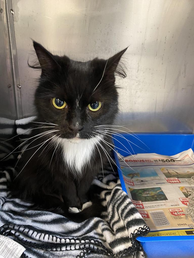 Maggielicious came into care with CPoM after being handed in to one of our vets for euthanasia. We don't understand why, she's four years old and has a lovely sweet purrsonality. She's a very attractive black & white tuxedo with silky medium length fur. Maggielicious carries her tail around up and curled over like a black flag, and has the cutest ear tufts.