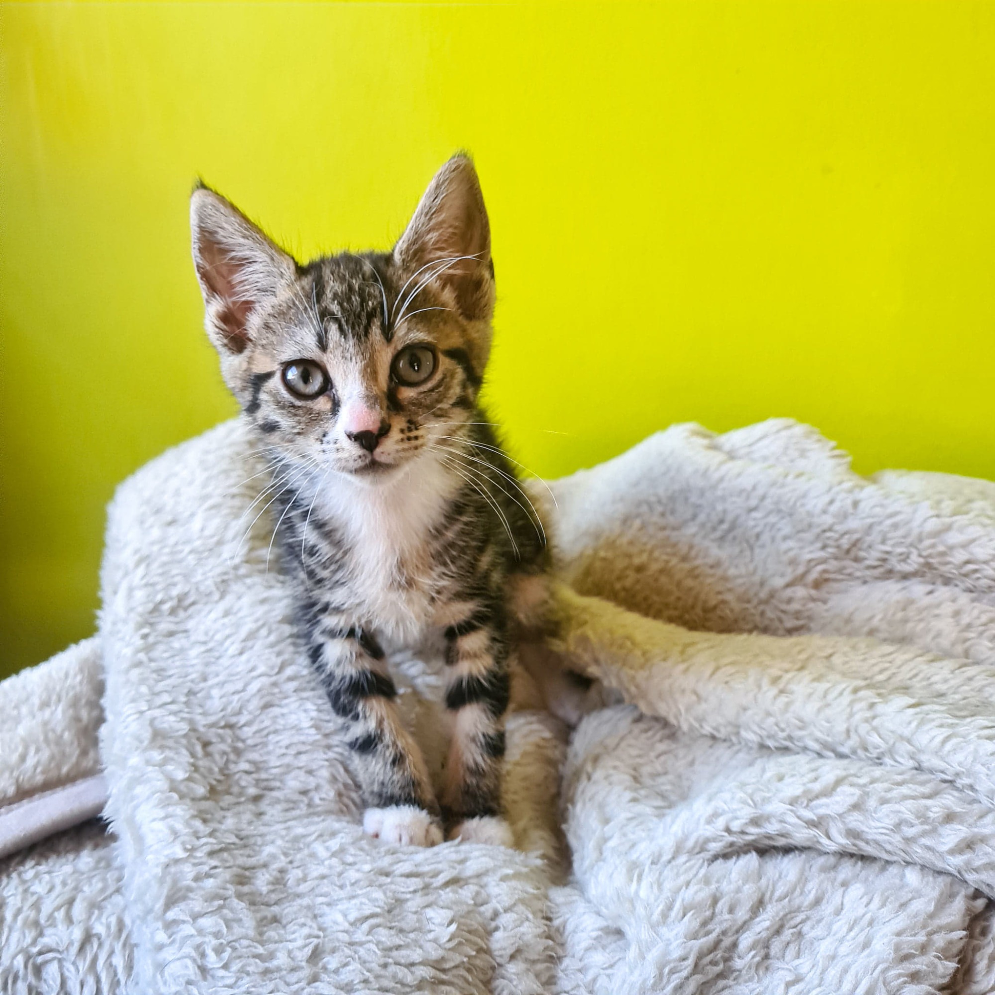 I am a fun loving kitten who loves to play with my siblings, I love climbing up my cat tower and running through my tunnel! I may be small but my personality is big!