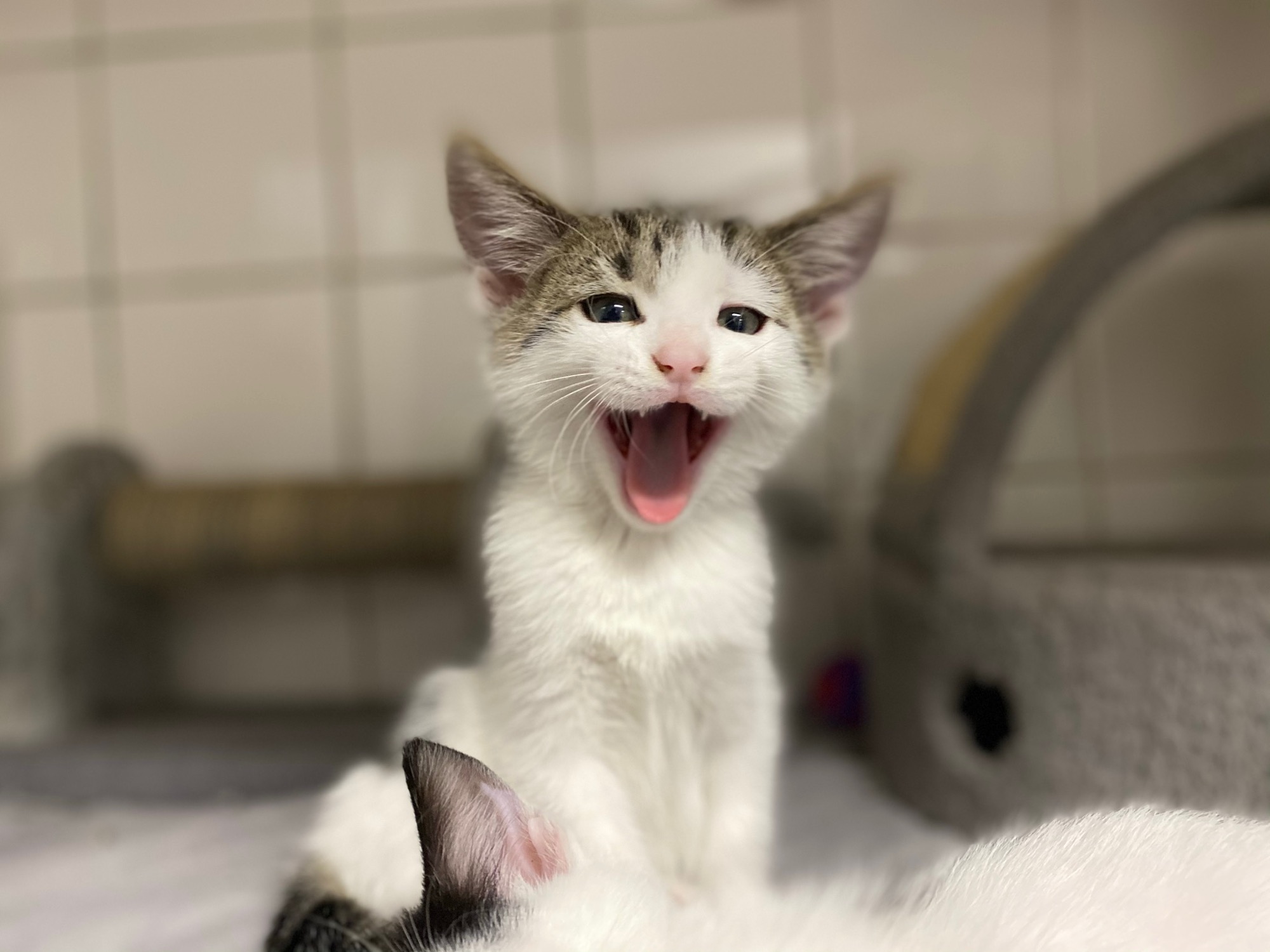 Gibson is an 8 week old Male Tabby & White Domestic Short Hair Kitten. He is a very sweet and chill kitten. He also loves playing with his littermates who are all named after famous deserts. Gibson and his siblings were born at a mechanics workshop and rescued from inside a car. They have come such a long way now and are beautiful little kittens!