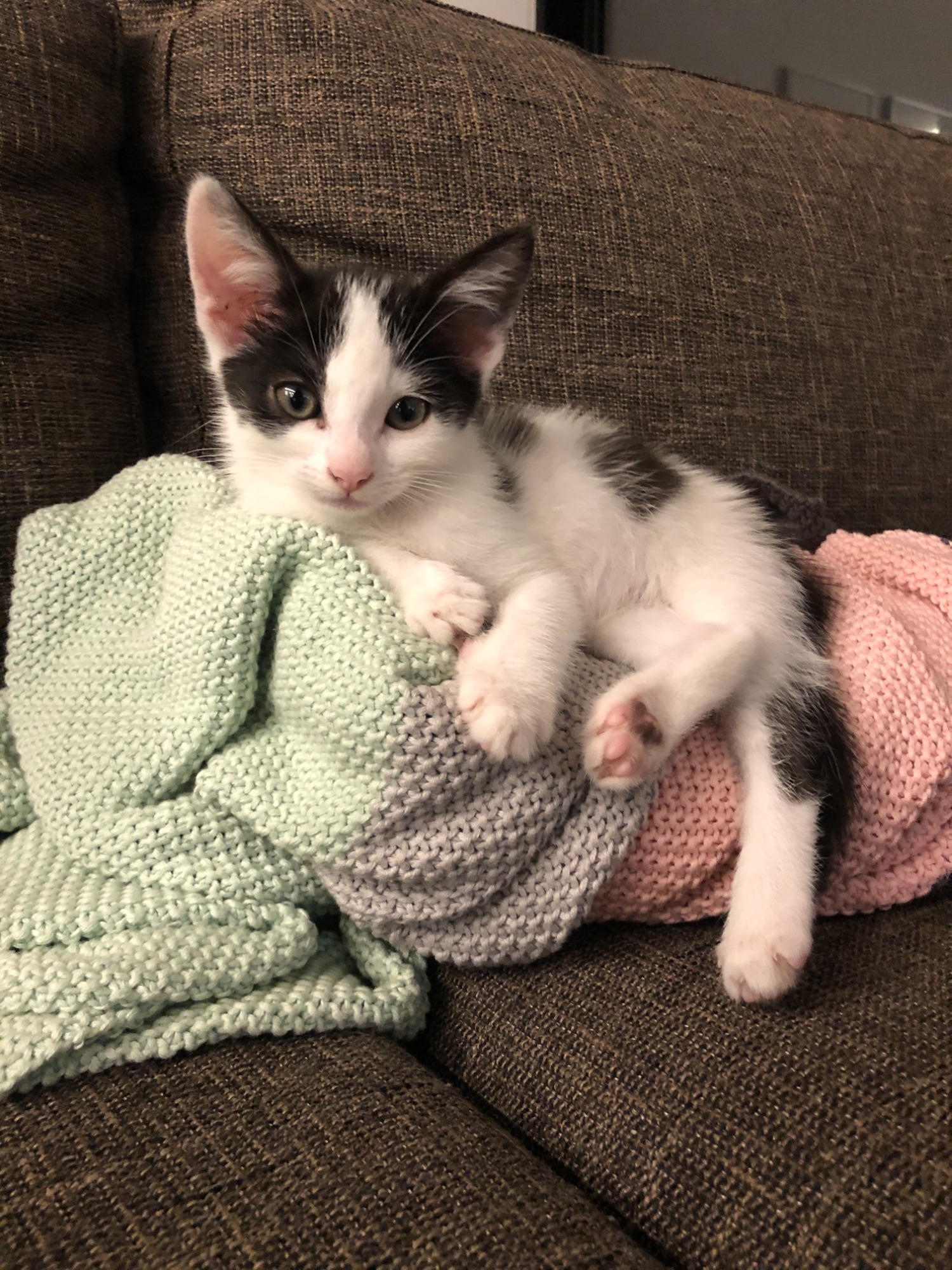 Beattie is the only lady of the bunch, and she’s sure to let you know it. When alone she yells for attention - be that from her siblings or her foster parents. Said yelling also occurs if travelling in the car, or when she’s hungry. Lucky she’s so cute and her yelling is adorable. Beattie loves her fair share of playing, but she’s a bit smaller than her siblings at the moment, so she’s generally the first to need rescuing as well. She is an independent lady and not so fussed on laps, but she does love being close by at all times.