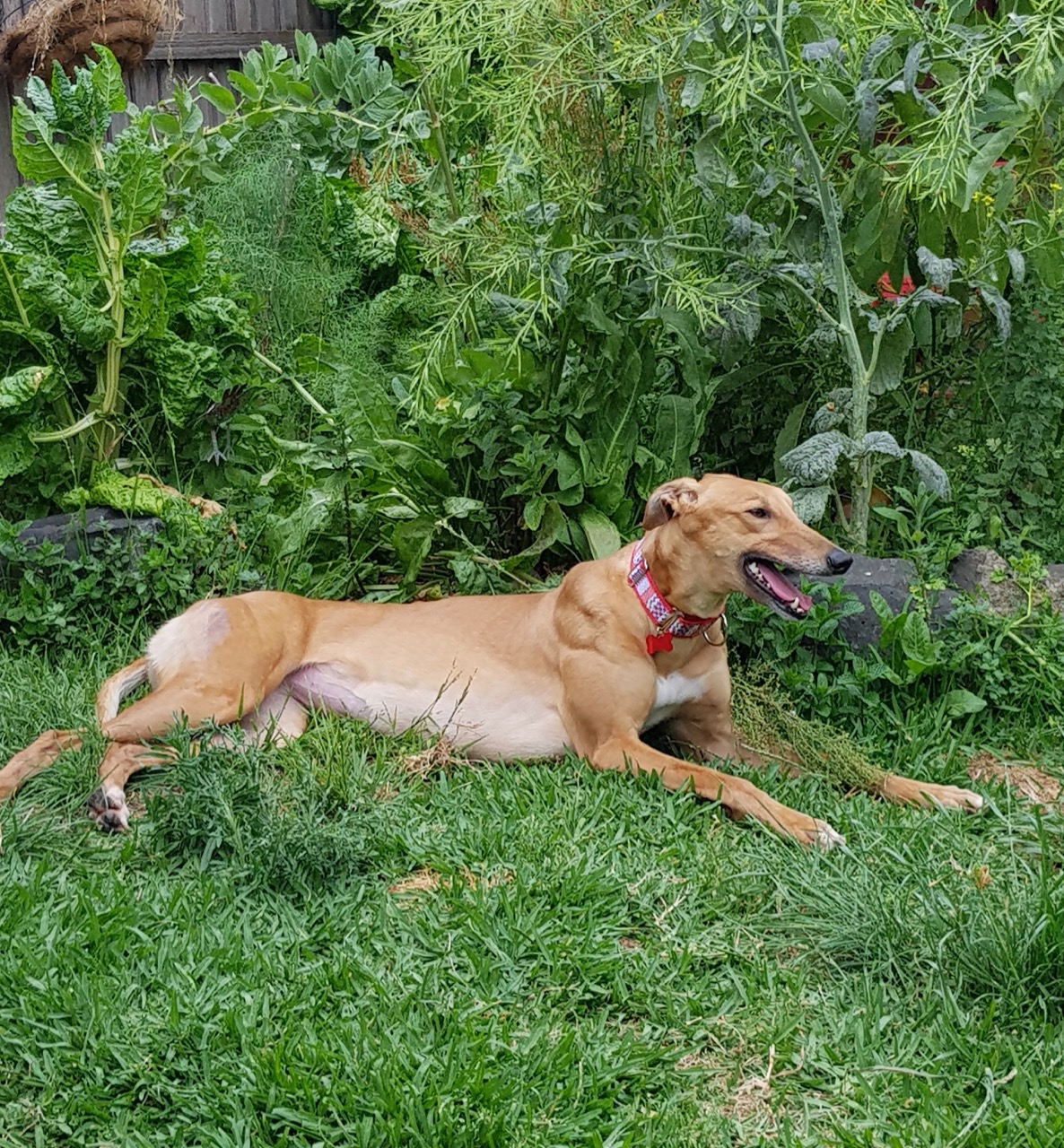 Stunning Cleopatra eyeliner, inquisitive dark brows and floppy, velvet ears, Georgia’s red fawn fur is so soft that it’s rumoured to be real silk. Georgia is friendly, affectionate, and outgoing, so much so that we’ve crowned her Miss Congeniality. She loves people and charms the pants off everyone she meets. If Georgia’s happy tail and gorgeous eyes don’t pull you in, then her greyhound lean will have you head-over-heels in love.