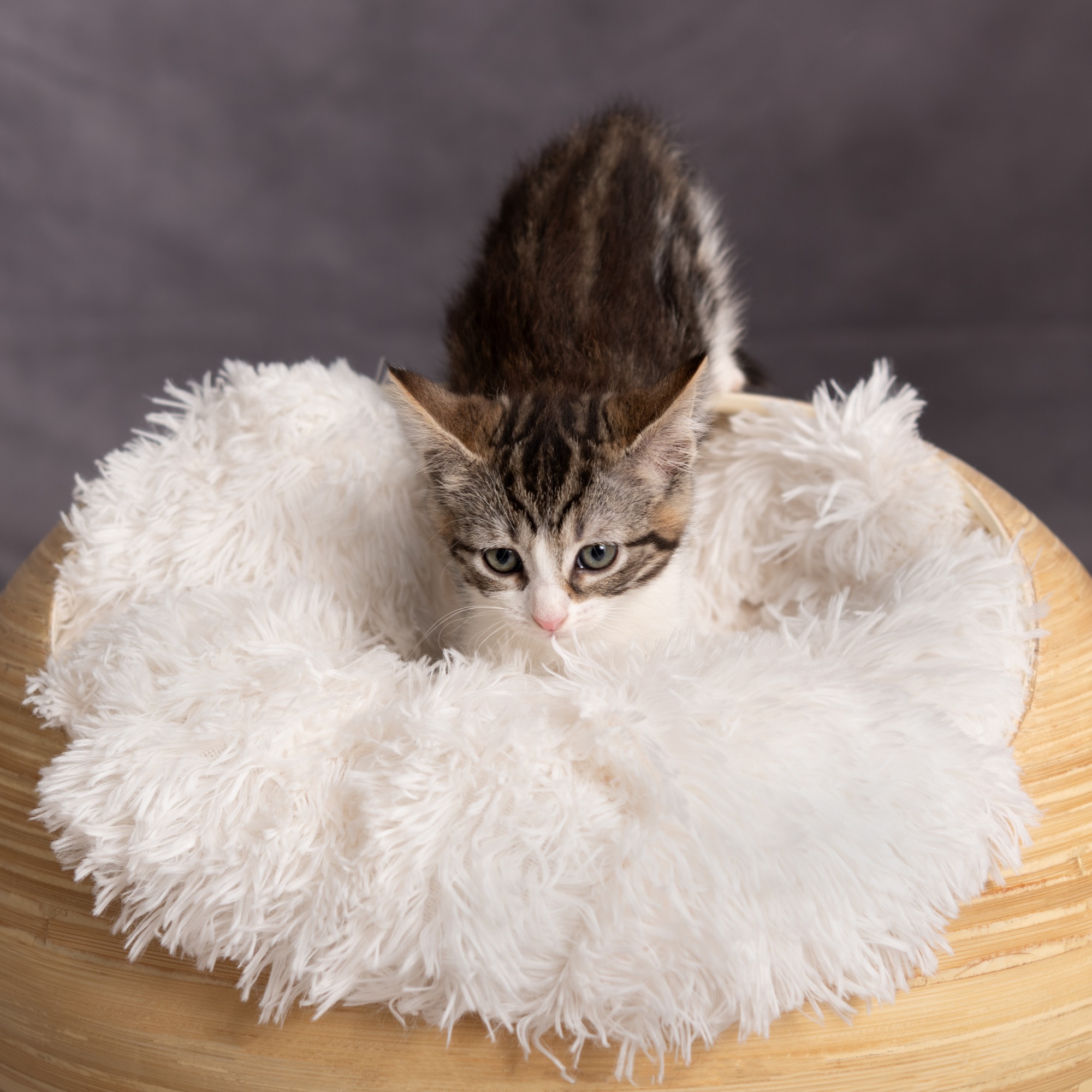 Fiona is a typical kitten, full of playfulness and curiosity. She is currently in foster care and housed with her 4 brother and sisters and they love to play and get along with each other very well.