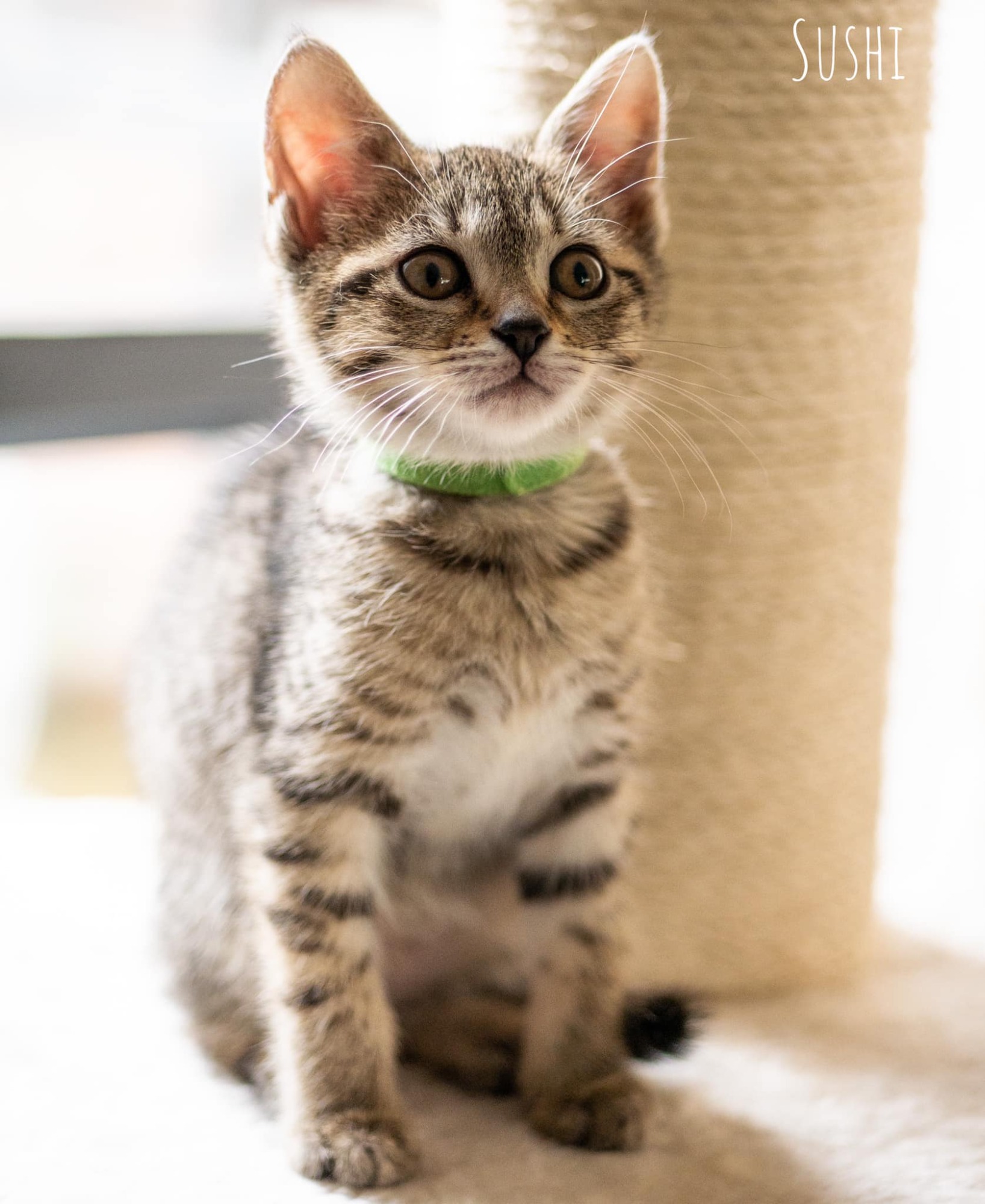 Here are the babies! Five adorable tabbies, four girls and one boy! They are getting used to living in a home, learning how to use a litter box, making friends with dogs and cats, causing chaos everywhere. Most importantly they are gaining some much needed weight and should be big enough for vet work soon!