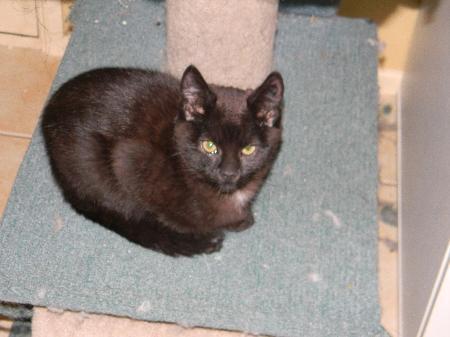 Tux is a cute boy all black with just a small amount of white on his chest. Hes affectionate but not demanding and loves long pats and cuddles. Tux is a good boy who is using his scratch pole and litter tray well