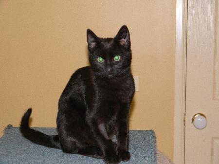 Onyx is a stunning black kitten shiny and sleek and just a bit more than a little oriental in him we think given his build and face shape. On top of the looks you get a beautifully affectionate boy who just loves human interaction and will purr like crazy when he gets a pat. Onyx is currently in foster care in the macedon ranges area. If you'd like to meet onyx, please download a copy of our cat adoption questionnaire from our website at: http://www. Headingforhome. Asn. Au and email it back to us at: headingforhome@austarnet. Com. Au