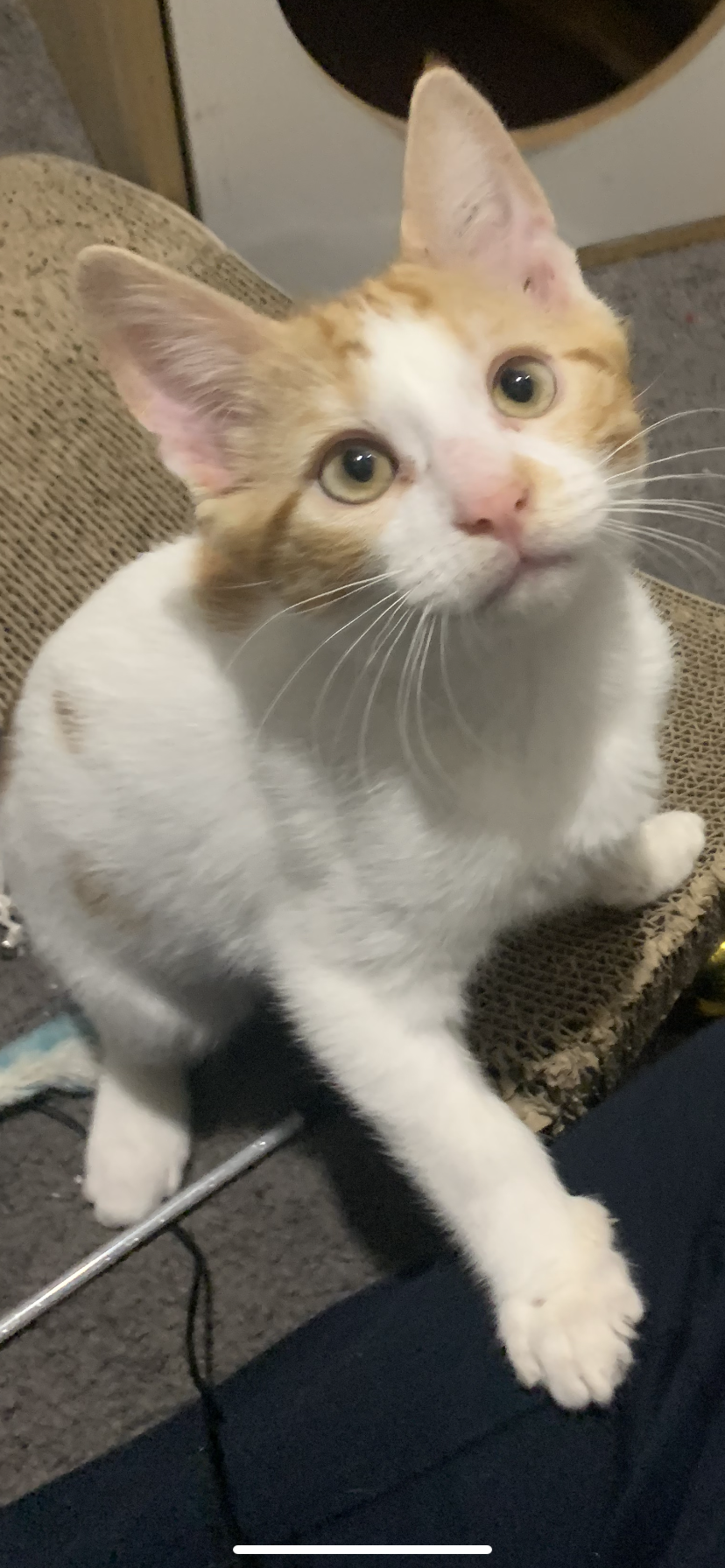 Playing with toys in the morning and snoozing in the afternoon in a sunny spot or on the bed. He chirps when you enter the room to say "Hi". Loves pats and tummy rubs and rolls over for more.