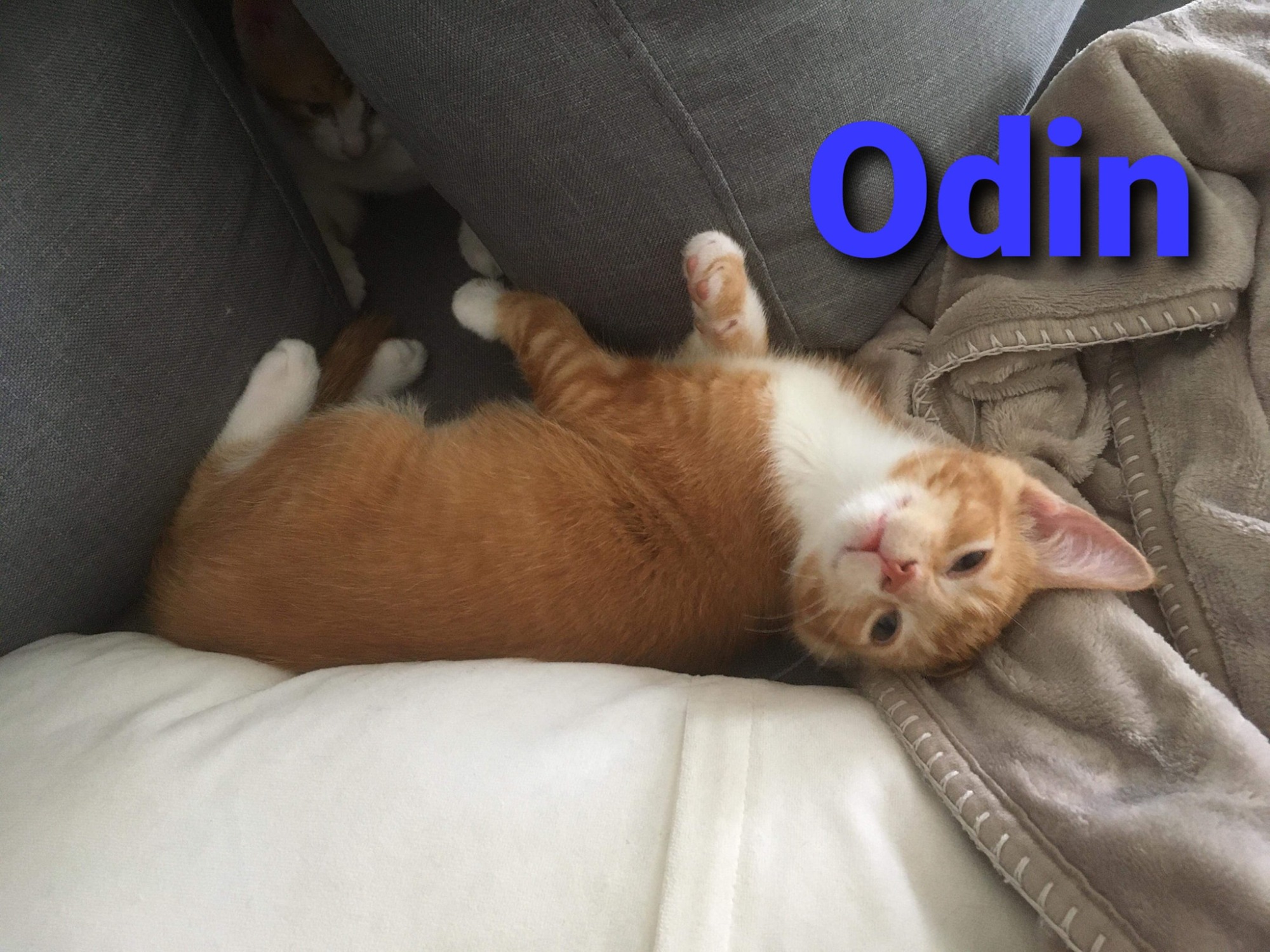 Odin adores his foster families cats he follows them around the house and gives them a lot of love and affection. He loves his brother Loki and they play endlessly together.