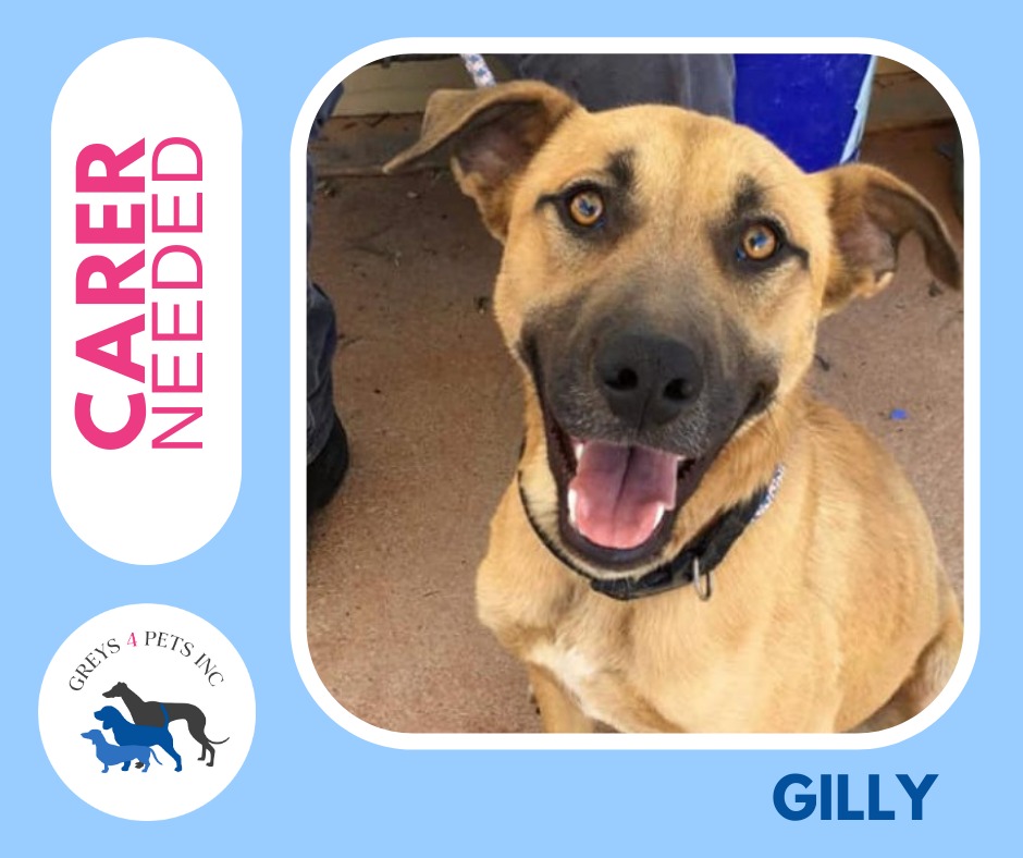 Hi, I'm Gilly! If you like your GSD mixes tall, blonde and super handsome, then I might just be the guy for you! - I am just past that super high-energy, fun puppy stage at two years old, but I'm still full of energy and I love to play. I have beautiful, distinctive markings on my face (I think you'll particularly appreciate the way I put on my eyeliner! My handsome and happy face is a real crowd-pleaser! I am friendly towards other dogs, so if you have a friendly and playful dog already, I would love a new fur sibling! I like being around small humans, so if you have little ones, bring them to meet me! I've heard that some people have strange furry little animals with wide eyes and sharp claws (I'm pretty sure they call them cats?) but I've never met one in the flesh. So I'm not sure whether I'll be comfortable around them. Can't wait to make your acquaintance!