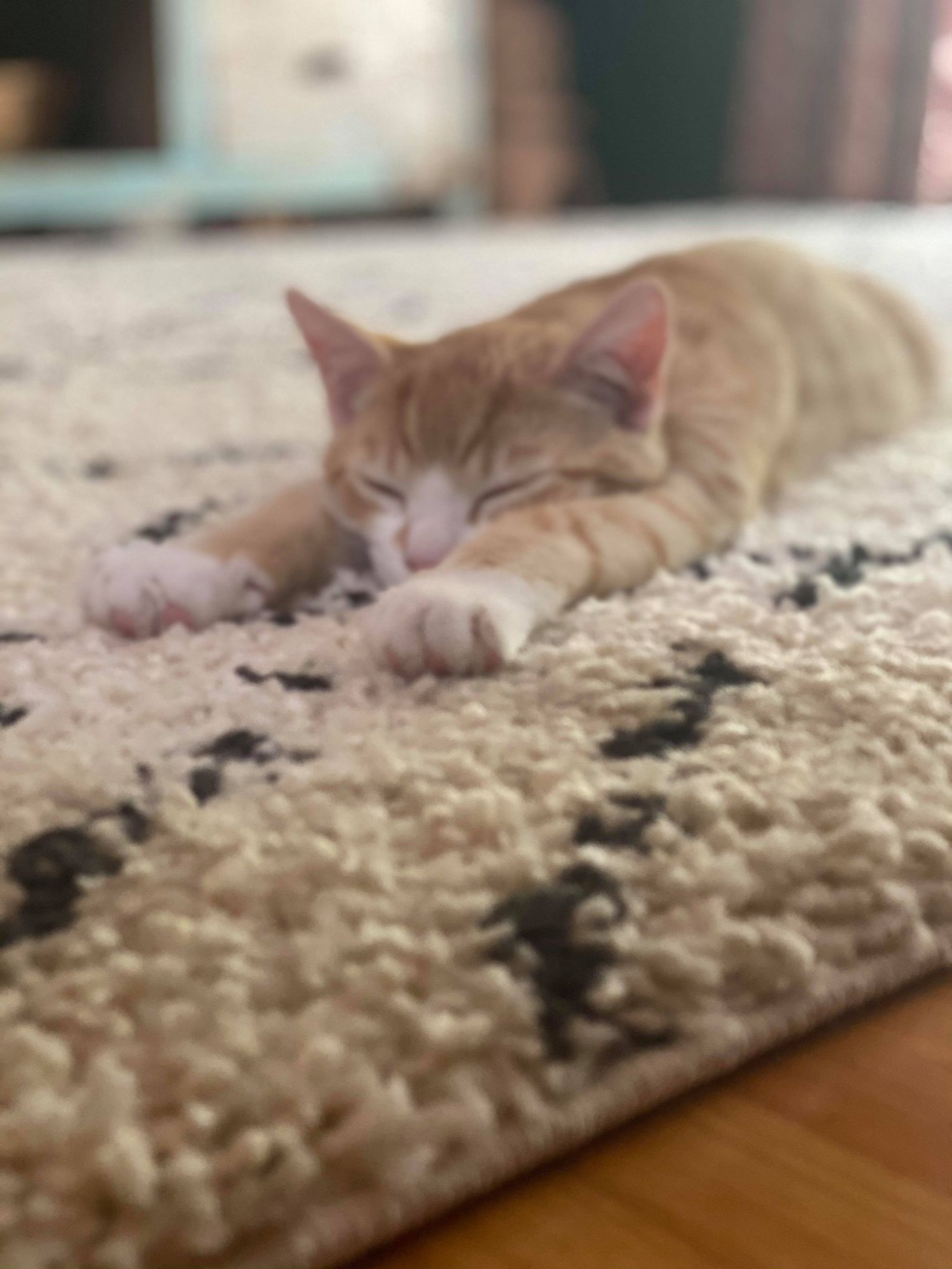 Cashew came into care with his brothers and sisters about 8 weeks ago. They had little to no human contact and other than being in the pound had no experience of being indoors. Boy have they come a long way! Cash has the sweetest nature, he loves affection and is very playful. His coat is the most beautiful peachy ginger colour , he has 4 white socks and a little pink nose. Cashew is a purr machine who loves the company of humans ( that he trusts) and other cats. He is still a little unsure of strangers although over time he is happy to make new friends. Cash would love a quiet home with adults and older children and maybe another furry friend to play with as he loves a bit of rough and tumble. This peachy boy will bring nothing but hours joy and love into your home.