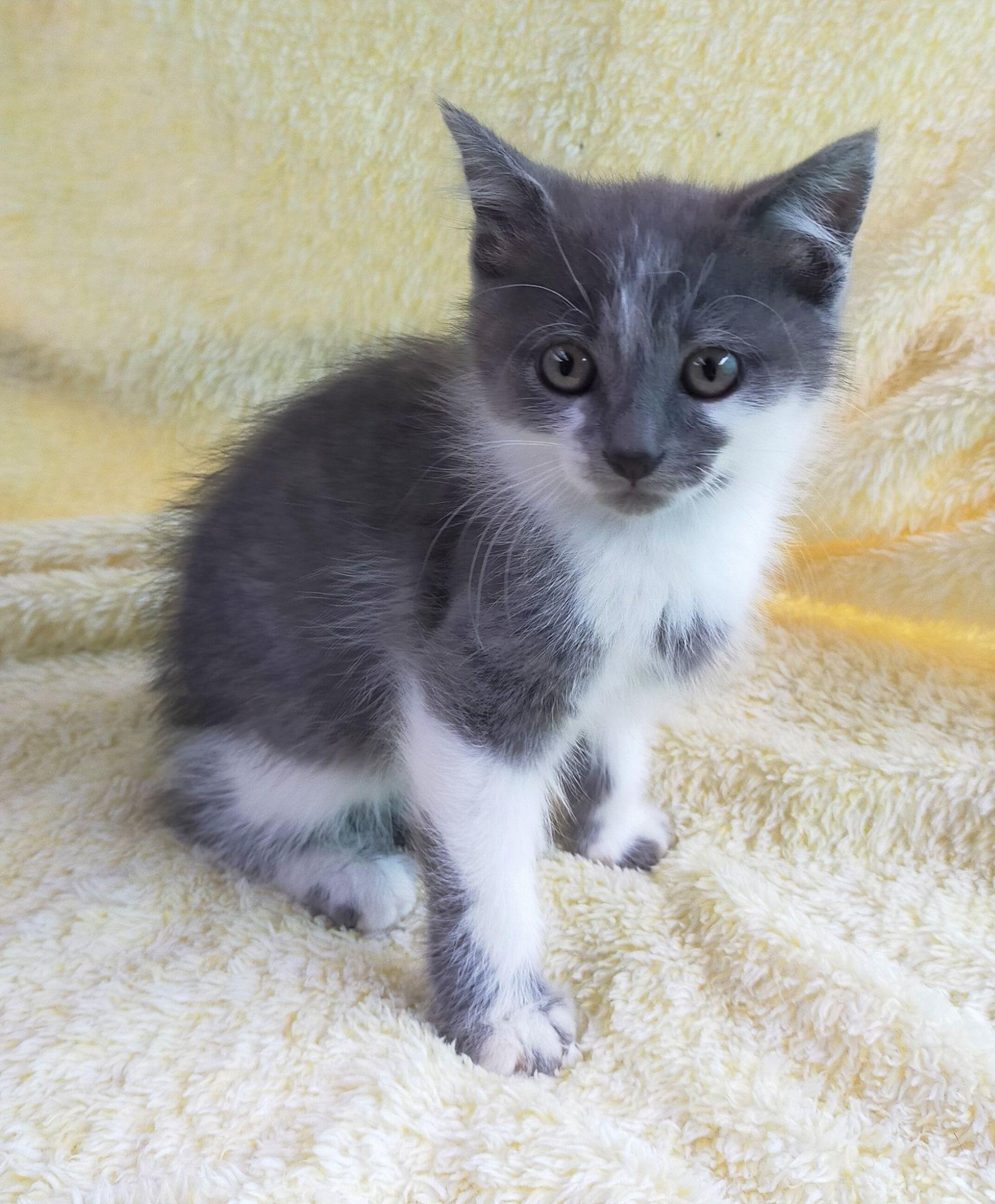 Smudge is a gorgeous grey and white kitten looking for her forever home 🙂