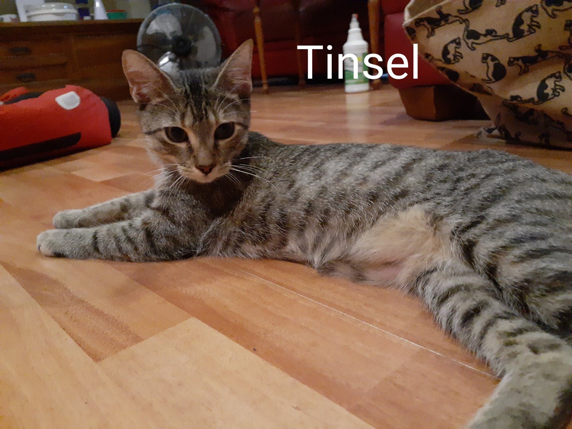 Like most kittens Tinsel is inquisitive and just wants to play. Everything is a toy to be played with, and life is one big adventure.