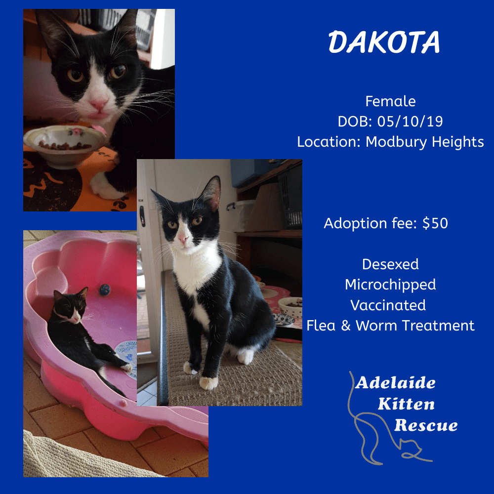To meet Dakota, PM us, email us at adelaidekittenrescue@gmail.com, or call 0434 131 997.