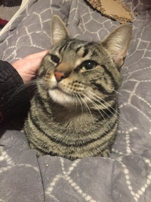 Sassy will initially be a nervous boy and will take time to adjust to a new home. Once comfortable he loves head butts and ear scratches, and will roll around to get them. He is not a fan of belly scratches or being held.