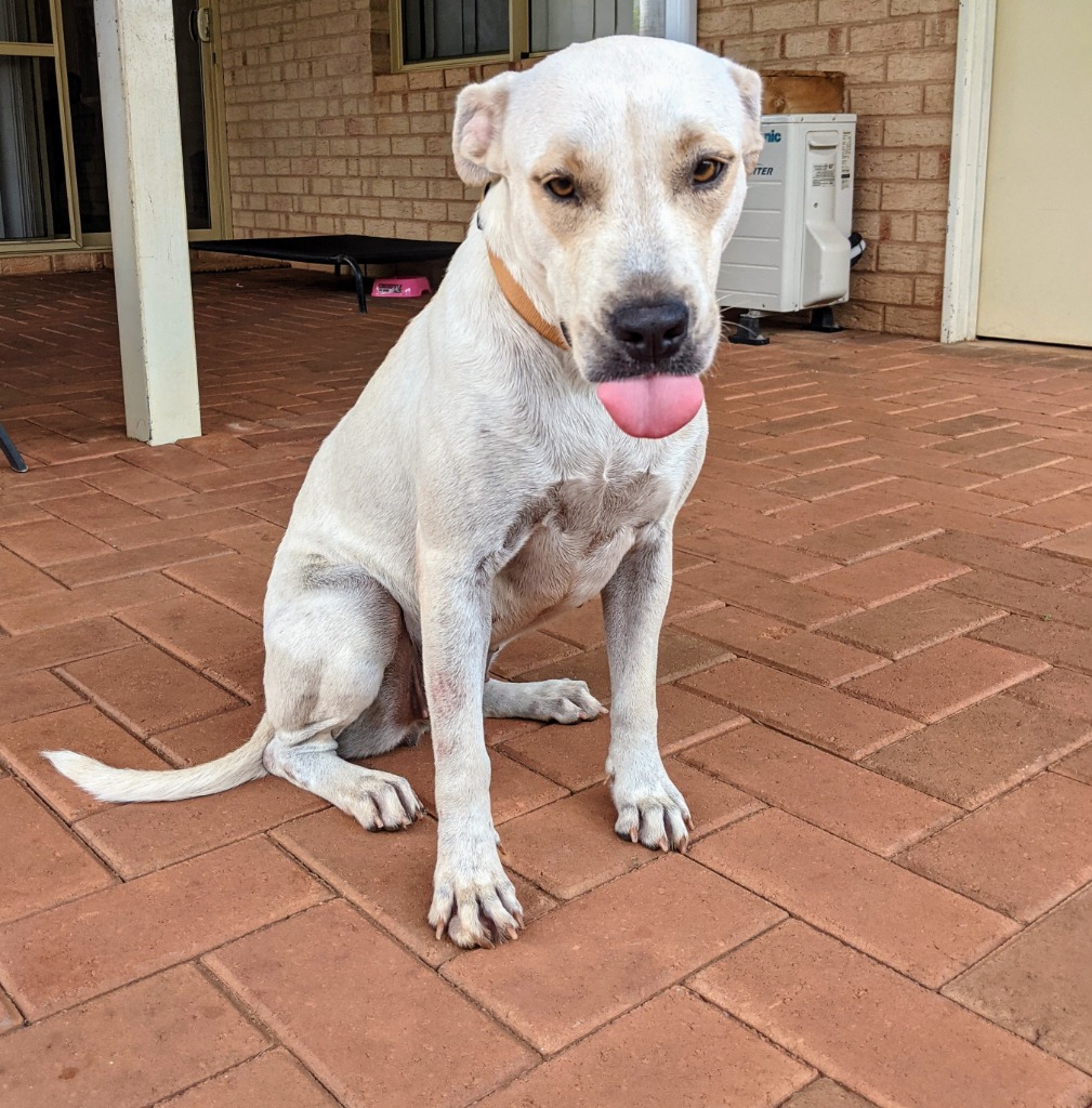 Hi my name is Miley and I am a white mixed breed with some Pilbara special. I can be a little excited when meeting new people but definitely behave when told. I love to get cuddles and be close to my humans, even the little ones. I am quite scared of my cat sister who can be very mean to me. At the park I am a bit timid meeting other dogs but after our sniff hello I am fine. We have a kids pool at home and I love to sit in it and play in it. Toys are not so my thing but maybe you can convince me with some training. I have not been to the beach yet but I might like the water to swim in. If you are looking for a very sweet natured dog then I am your girl!