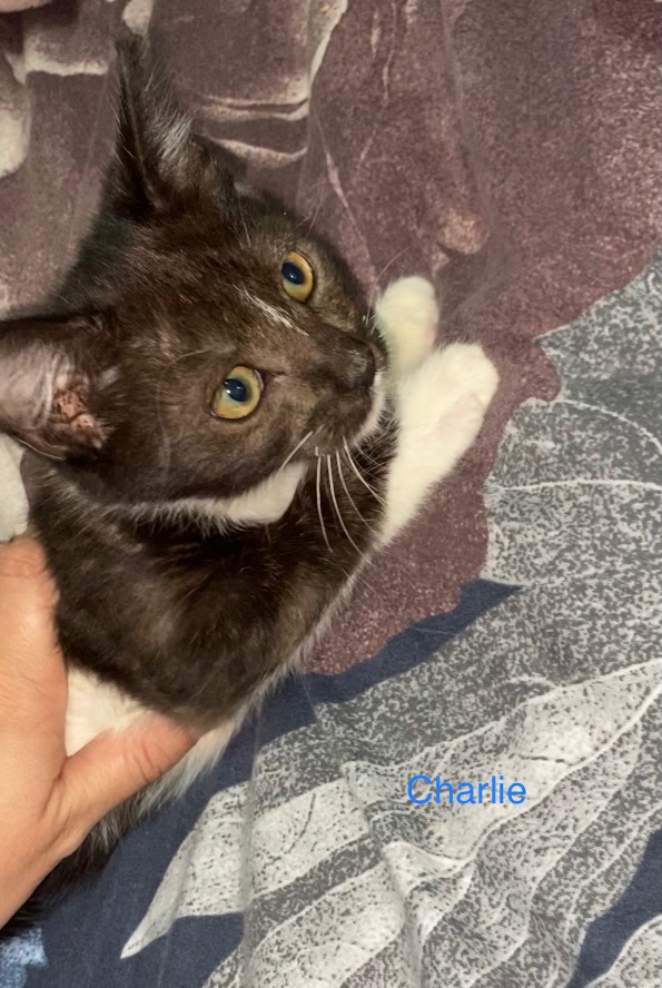 Charlie has grown up in a house with other cats, dogs and children, and as such we believe that along with his sister Georgia, he will fit well a loving home.