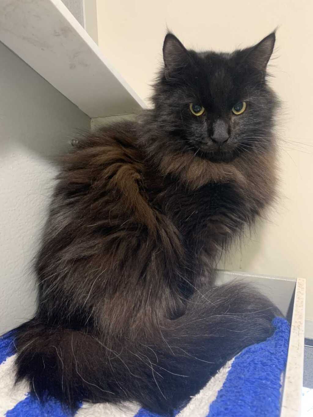 I have beautiful long fur that looks like the night sky and I do require a good brush (I love the brush though!). I am not the smoochiest cat but I do love a pat and am happy to just chill next to you on the couch.