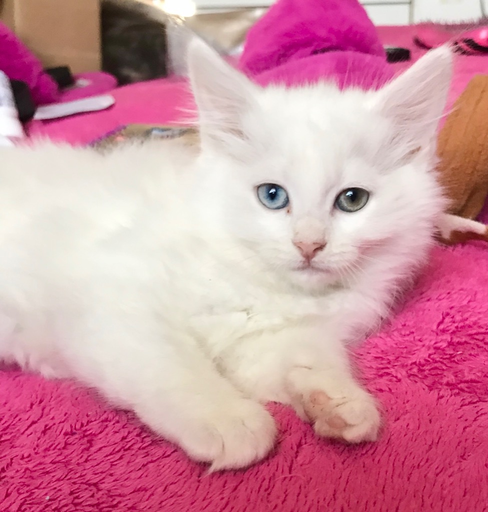 These gorgeous girls are a perfect pair for a loving home with older kids or no kids. Having come into our care as older kittens, they are both a little bit shy to begin with. Trinity, who has white fur that is soft as a marshmallow, quickly warms up and becomes VERY affectionate, extremely playful and lots of fun! Oracle, the ginger sweetheart, is very bonded to Trinity, and takes longer to overcome her shyness with new people but is sweet once she does. She's less rambunctious than Trinity, but she's a perfect foil for her sisters antics, and happily absorbs her sisters extra play fight energy so you don't have to! They snuggle together and keep each other company beautifully, so you never need worry about them being lonely. Once they get used to their new forever home, we are confident they'll come even more out of their shells and show you their quirks and personalities, and provide you with years of entertainment and cuddles.