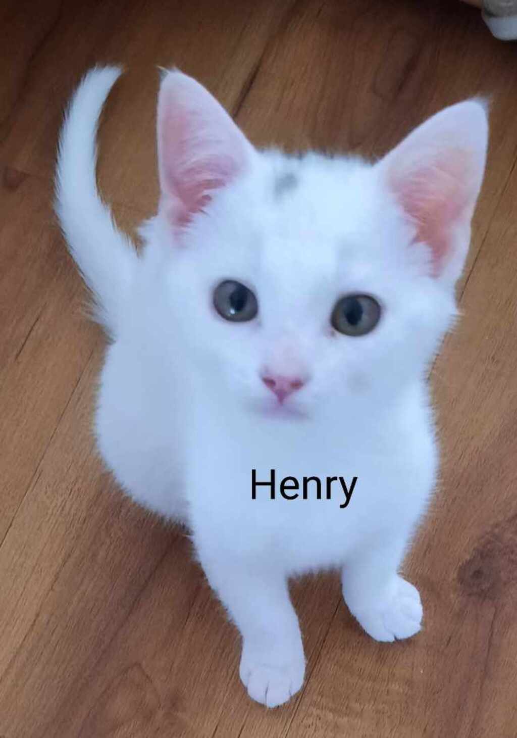 HENRY #224C is a very cute white kitten ready to find his new home. Henry is happy doing his own thing but he also enjoys a cuddle. Henry has a little smoke grey patch on his head.