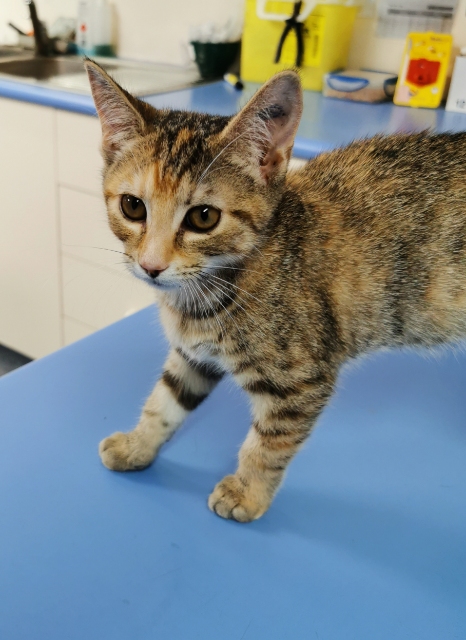 Tora is a very active and playful kitten. She is always busy doing zoomies or playing with her siblings. She is an affectionate baby that does love snuggles also. She has been brought up around large dogs and plays well with them. She does have a close bond with her sister poppy but does get along with other cats as well.