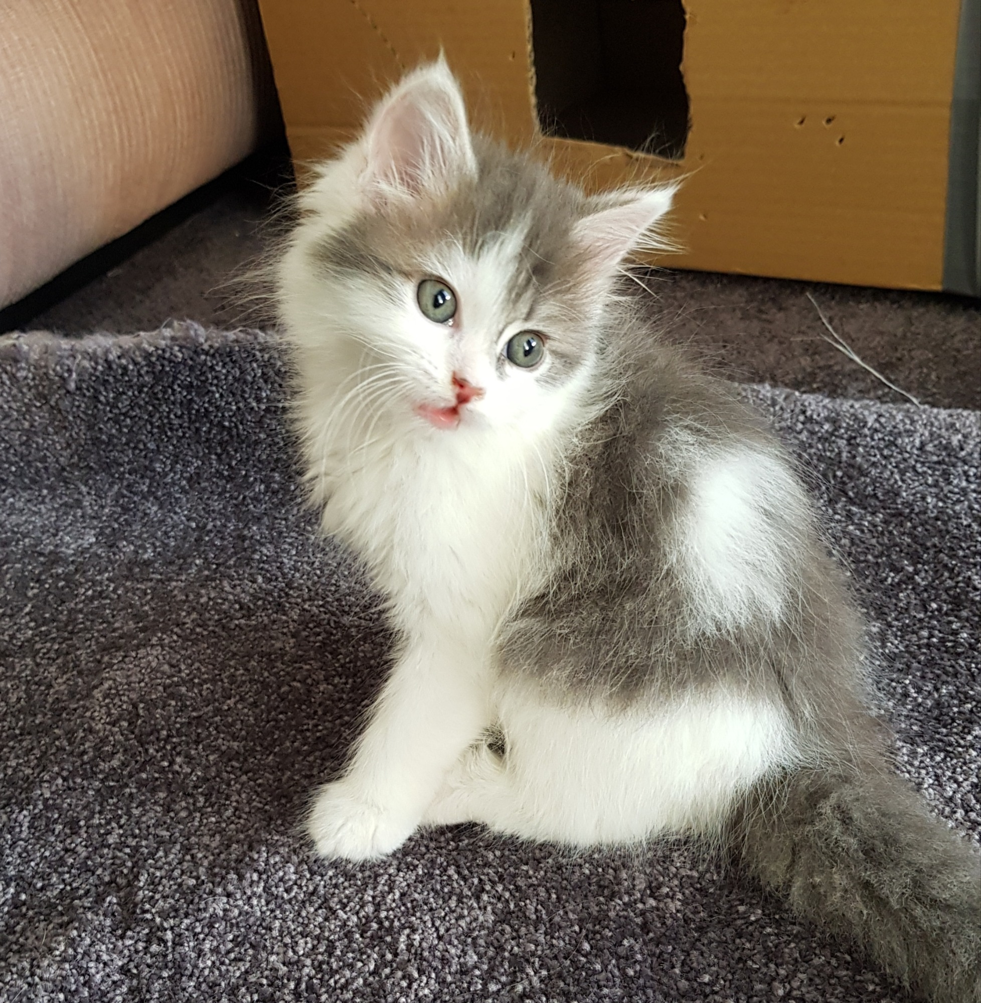 I'm a very confident little fluff ball with a cute face and a bundle of confidence. I like to be the leader with my other two sisters and am the first to try anything and climb anything. I love rolling around with my sisters or playing with my foster daddy. I'm a good girl and always use my litter tray and eat all my dinner.