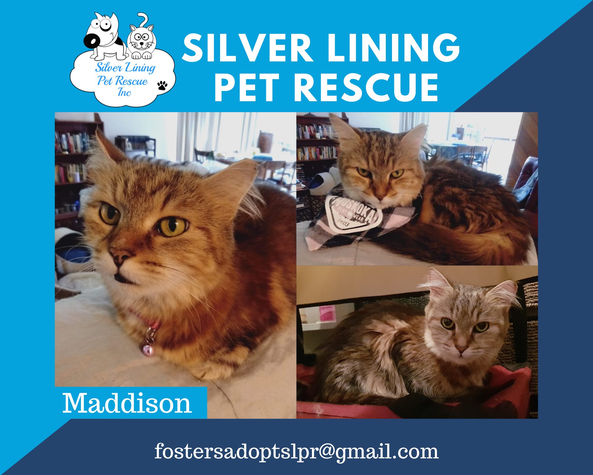 Maddie is a small 9 years old that came from a rural pound. Was very scared at first but now is used to her new family and us quite affectionate, likes a good chat in the morning and is the only one that listen to foster mum and first to run in the kitchen when dinner is ready 😋No need of a dishwasher since she helps cleaning her bowl nice and shining. As soon as the family goes to bed she does too and sleeps well all night Can get stressed and will take a while to get used to someone new 🐱🐾