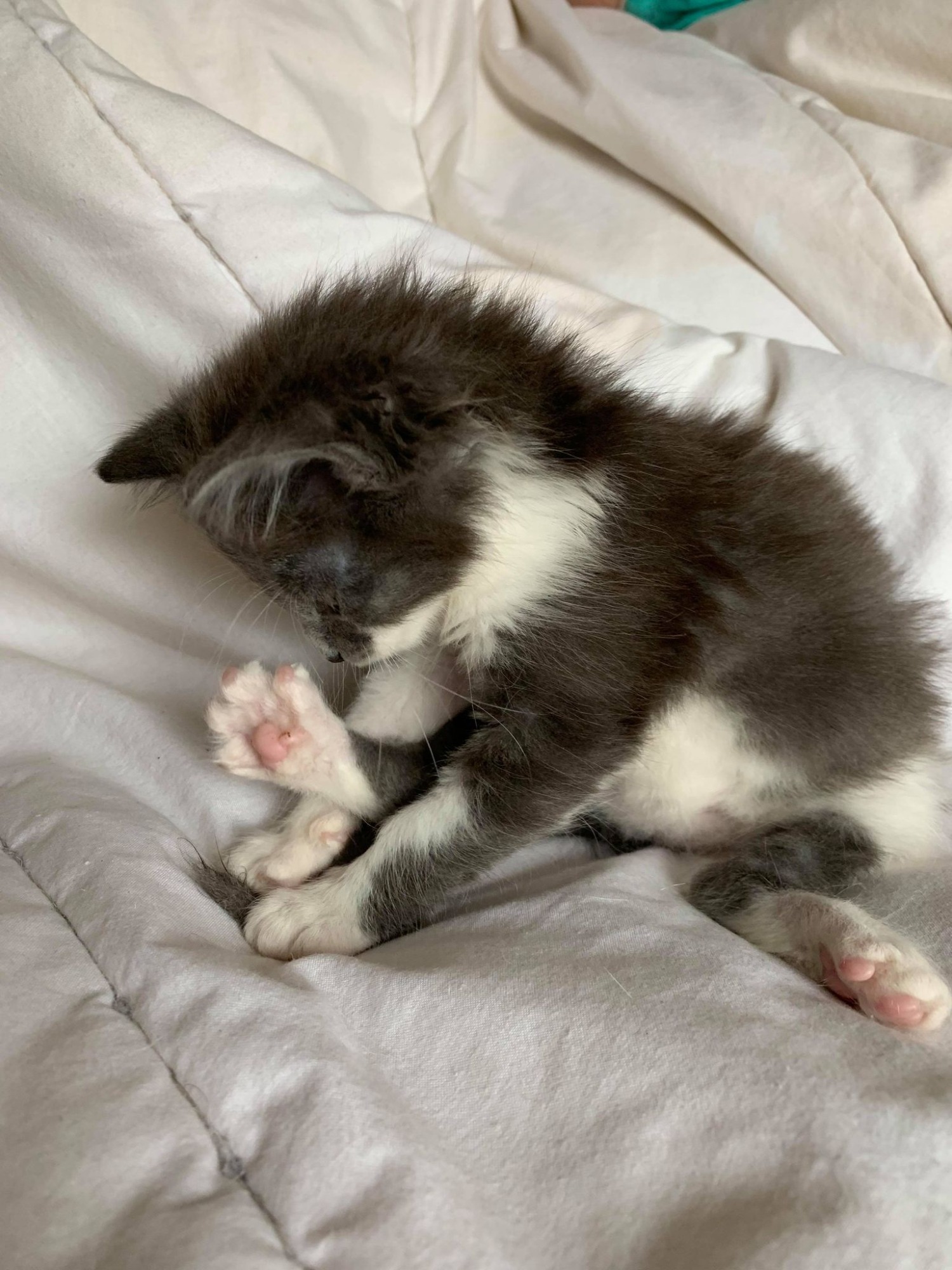 Artemis is the perfect other half to her sassy sister. She has the energy to match any mischief her sister gets up to, and the sweetest little face to get out of it afterwards. She can often be found climbing anything in sight or snuggled right up with Athena. She has a gorgeous medium coat with the most charming droopy whiskers. Who could stay mad at that face? I guarantee you that upon meeting, she’ll have you wrapped around her paw in no time.