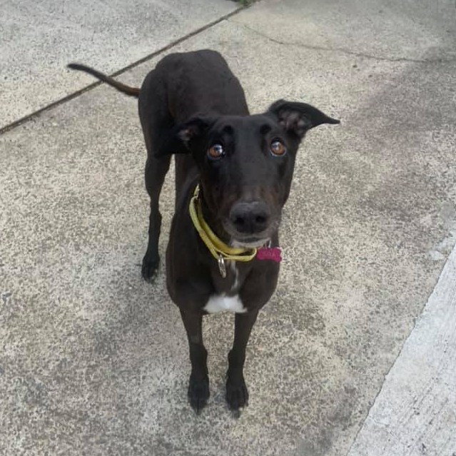 I'm new to Greyhound Rescue. I'm oh so sweet and and love asking you for some pats and ear scratches. Even better if you've got a treat or two! I know we'll be friends in no time. Check back later to find out more about me!