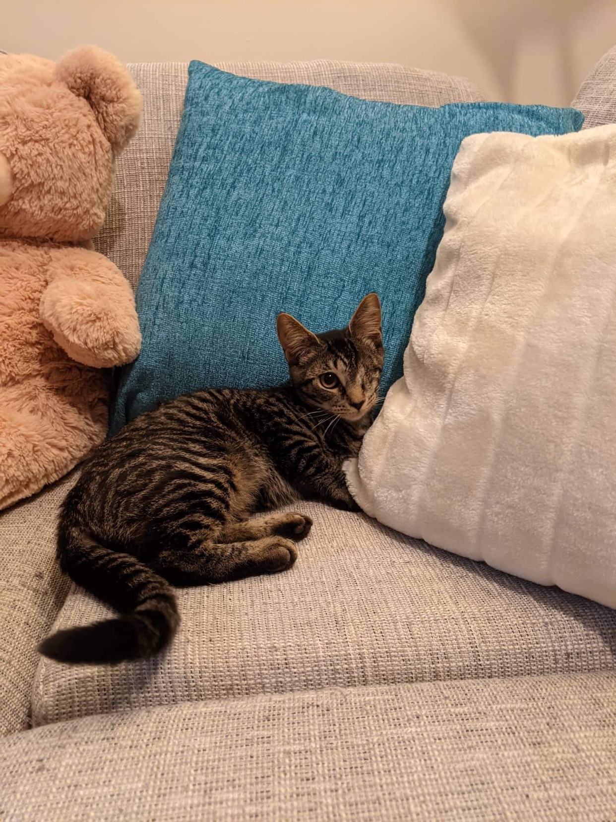 We were rescued from a ladies property with 11 other kittens. Sadly we were the only ones with infected eyes and we needed surgery to have one of our eyes removed.