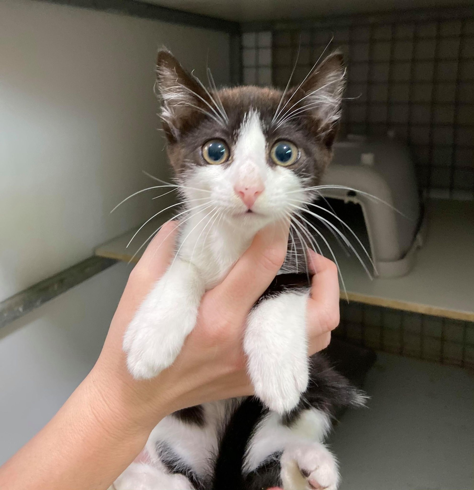 Imp 165 "Timone". Timone is a black and white male domestic kitten. He is approximately 8 weeks old. He was found in bushland with his 2 siblings who have just been adopted. He is a very friendly, happy kitten and will suit most new homes. He is microchipped, vaccinated, desexed, registered, worm and flea treated. He is ready for his new home now. His adoption fee is $225. Please call 6583 3488 if interested.