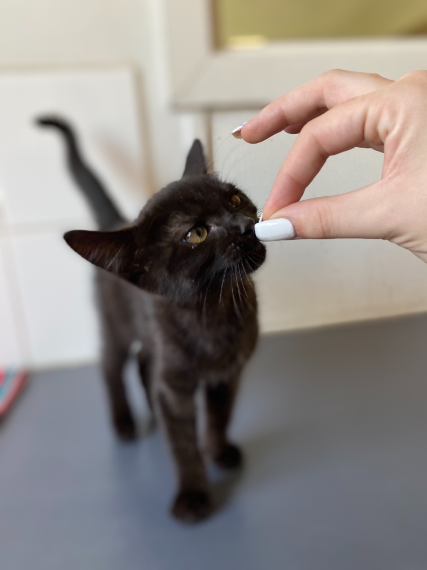 January is a 12 week old Female Black Domestic Short Hair Kitten. She is so sweet and loving and just wants to be around people giving and receiving kisses and cuddles! She also has her playful moods where she loves playing with her toys.