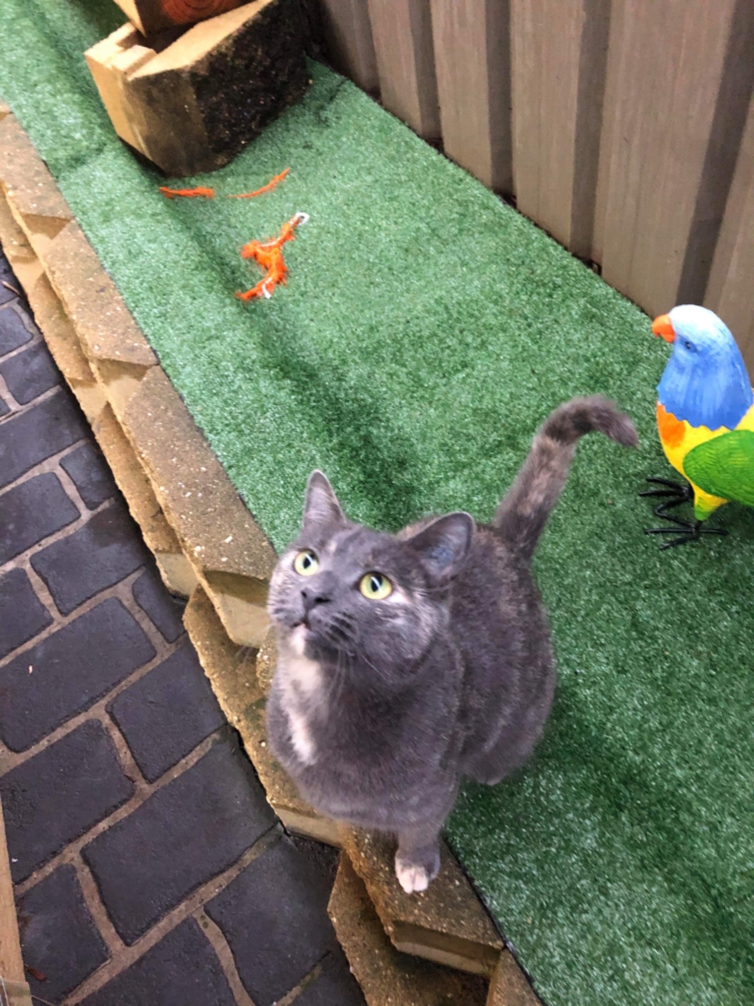 Gisela is a sweet 2 year old mummy cat. She gets along with other cats after having some time to get to know them and is used to dogs (large and small) and rabbits too. She can be a little skittish at times but once she is comfortable she will come for pats and enjoys attention. She’s a calm girl who enjoys time to herself but is more than happy to come greet you at the door. She’s not really a lap cat but will tolerate being picked up. She is gentle around children but as she’s not really a cuddly cat, she might prefer a home without very young children