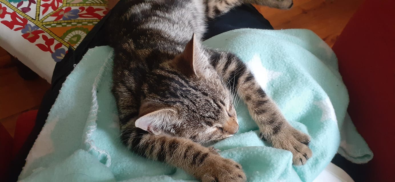 Hi I'm Mosby and I am one super sweet kitten with the most stunning markings on my fur. I live with my foster carers home after being found wandering the streets. I am a typical kitten - love pats, cuddles, playing, humans and love but everyone says I am the most friendly and affectionate kitten they have ever met!