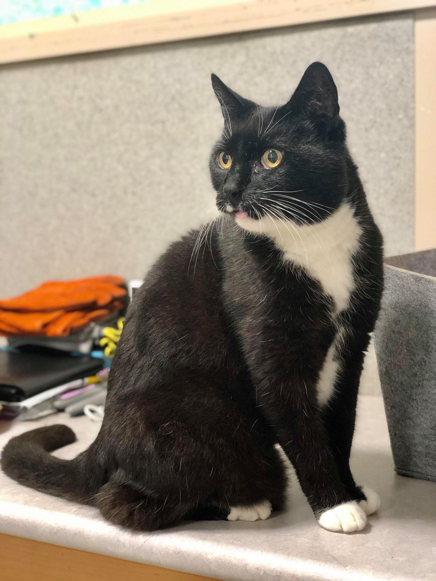 Imp 197 Sox. Sox is a 6 year old black and white male domestic cat. He was surrendered to a local vet as his owner became critically ill. He is a very happy, affectionate boy. He is litter trained, cat social appears quite easy going. He has been vaccinated and desexed. He will be wormed, flead, microchipped and registered prior to adoption. His adoption fee is $107. If you are interested please call us on 6583 3488.
