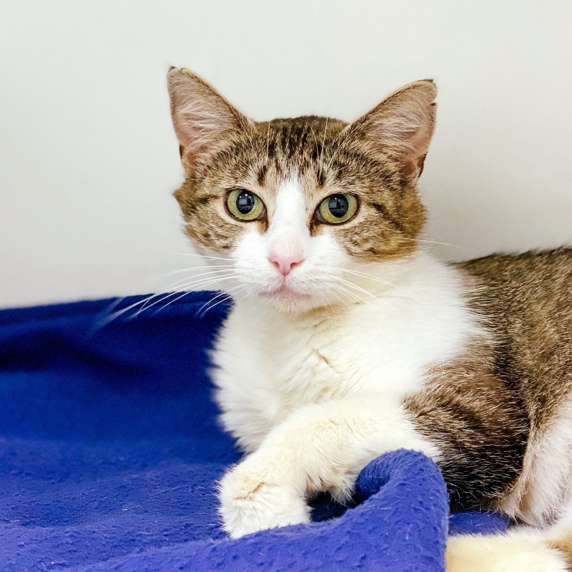 I’m seeking a home where I will be kept strictly indoors only, so that my pretty pink nose doesn’t burn in the harsh sun. I love getting scratches behind the ears and curling up in a comfy bed.